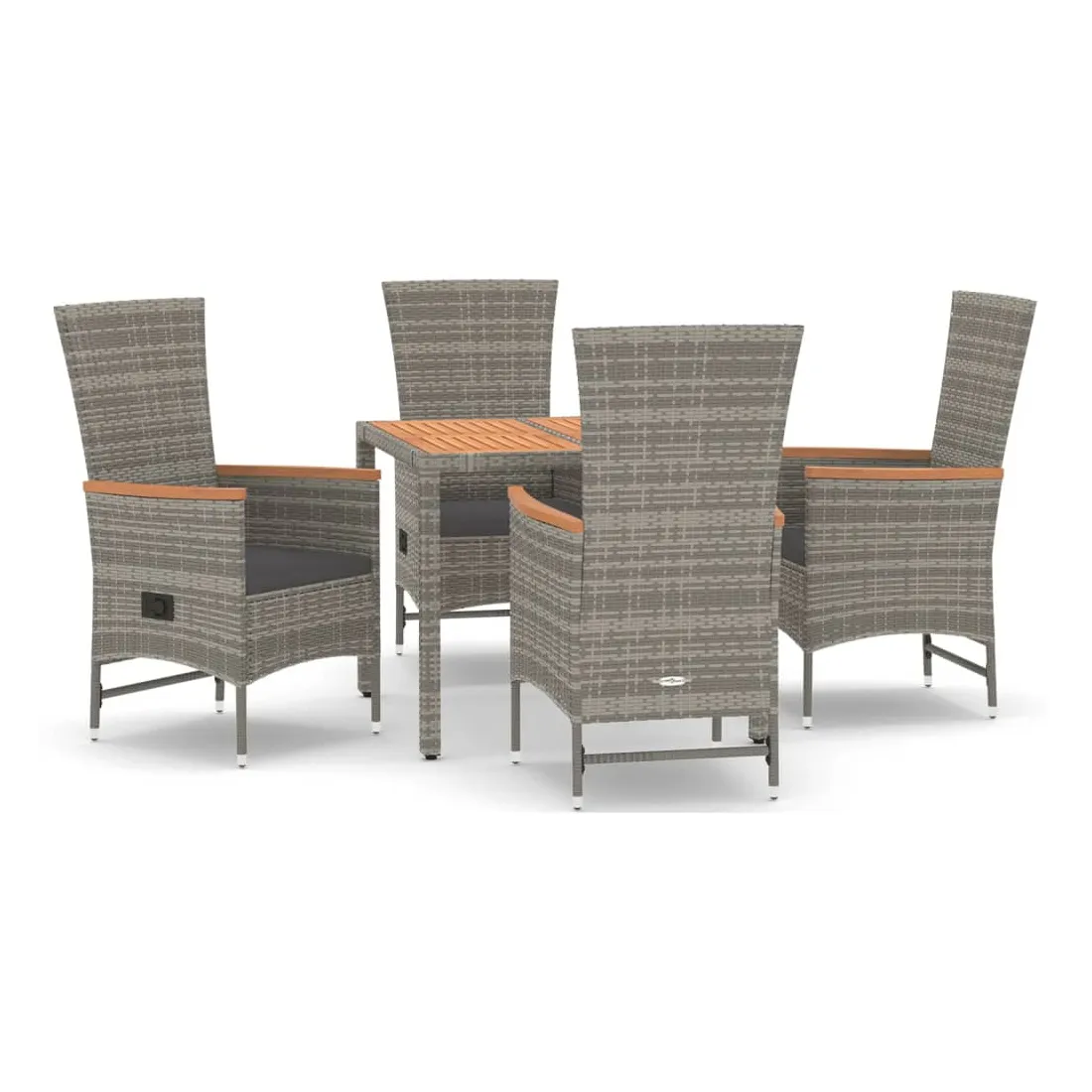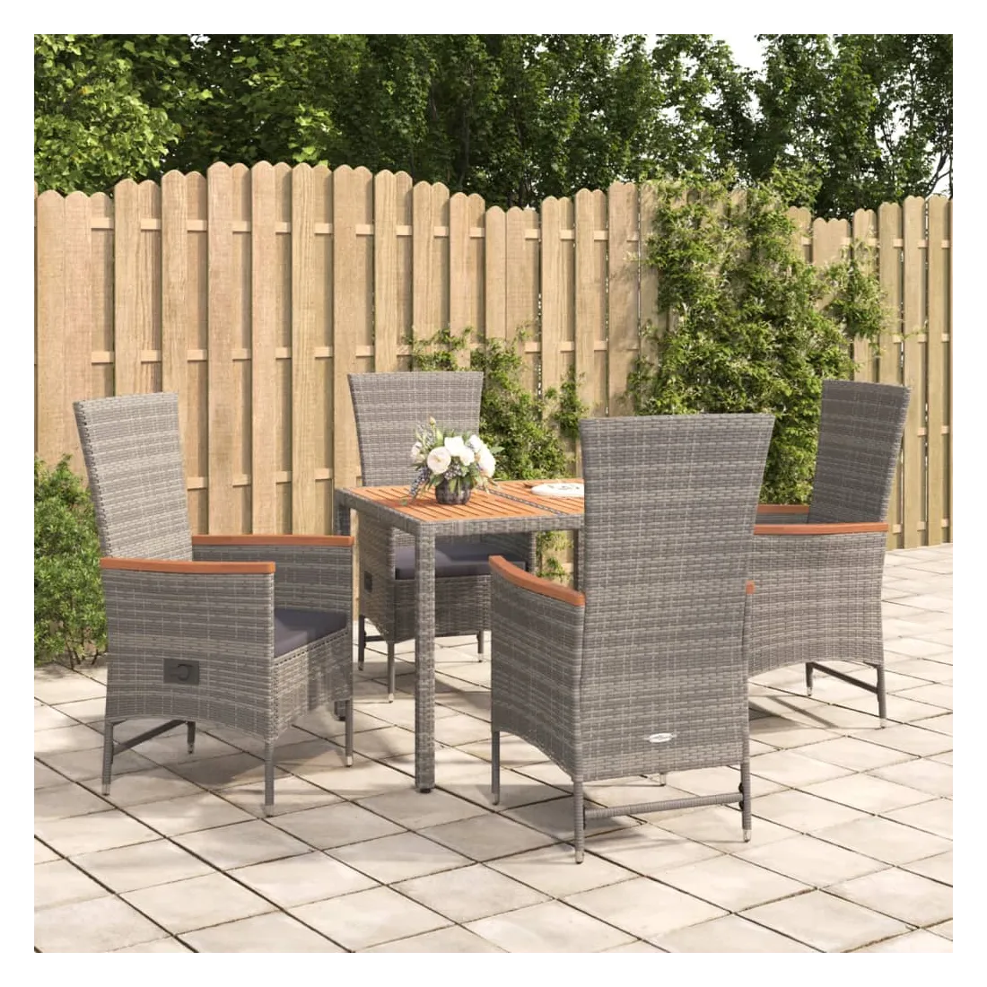Cet ensemble de salle à manger de jardin tendance, au design élégant et contemporain, est un excellent choix pour manger ou vous détendre dans votre jardin. Matériau résistant aux intempéries : la résine tressée, également connue sous le nom de rotin poly, résiste aux intempéries et est facile à nettoyer. Elle reste belle à l'extérieur pendant une longue période. Elle offre une excellente qualité, commodité et un aspect esthétique.Cadre robuste : les cadres en acier enduit de poudre rendent l'ensemble de salle à manger d'extérieur robuste et stable pour une utilisation quotidienne à l'extérieur.Dessus de table pratique : le dessus de table robuste est parfait pour placer des repas, des boissons et d'autres objets décoratifs.Conception modulaire : l'ensemble de salle à manger de jardin est flexible et facile à déplacer, vous pouvez donc le combiner avec d'autres segments modulaires dans la boutique en ligne pour créer vos propres configurations d'ensemble de salle à manger de jardin !Fonction d'inclinaison : les chaises de jardin sont spécialement conçues avec une fonction d'inclinaison afin que vous puissiez régler le dossier selon votre confort.Expérience d'assise confortable : le dossier ajoute un confort d'assise supplémentaire à la chaise de jardin. De plus, les coussins bien rembourrés vous permettent de vous asseoir confortablement. Bon à savoir :Pour faciliter au maximum le montage, chaque produit est livré avec des instructions. Remarque :Pour que vos meubles d'extérieur restent beaux, nous vous recommandons de les protéger avec une housse imperméable.