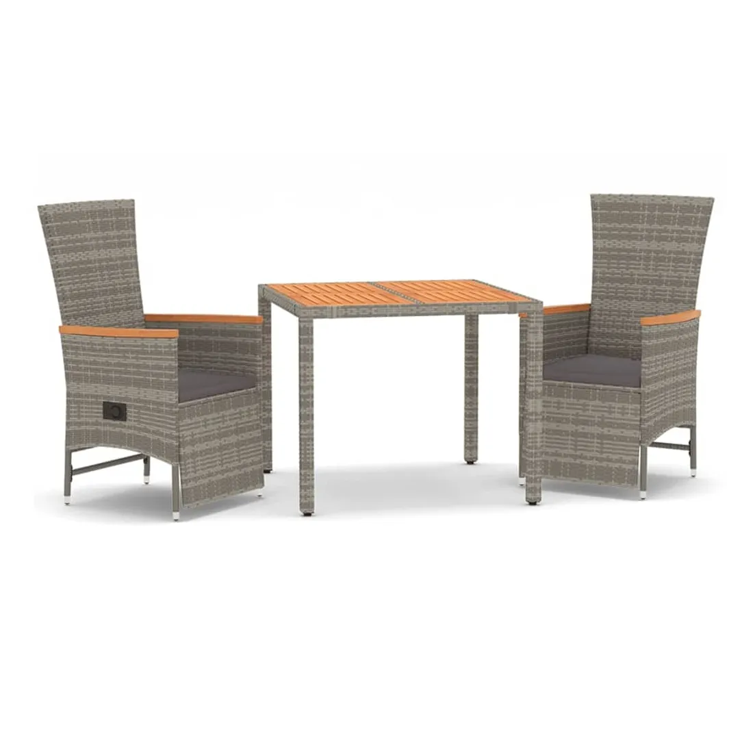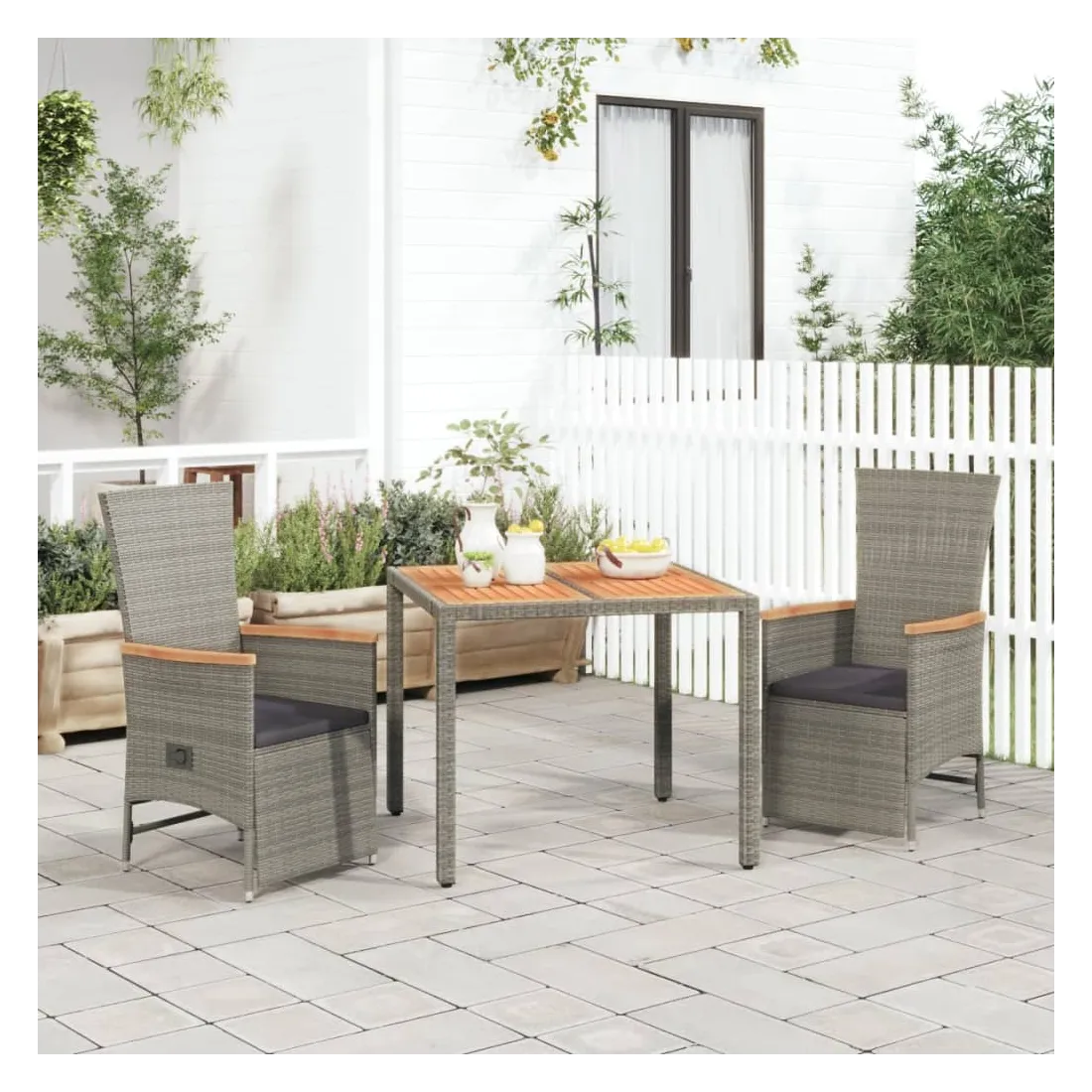 Cet ensemble de salle à manger de jardin tendance, au design élégant et contemporain, est un excellent choix pour manger ou vous détendre dans votre jardin. Matériau résistant aux intempéries : la résine tressée, également connue sous le nom de rotin poly, résiste aux intempéries et est facile à nettoyer. Elle reste belle à l'extérieur pendant une longue période. Elle offre une excellente qualité, commodité et un aspect esthétique.Cadre robuste : les cadres en acier enduit de poudre rendent l'ensemble de salle à manger d'extérieur robuste et stable pour une utilisation quotidienne à l'extérieur.Dessus de table pratique : le dessus de table robuste est parfait pour placer des repas, des boissons et d'autres objets décoratifs.Conception modulaire : l'ensemble de salle à manger de jardin est flexible et facile à déplacer, vous pouvez donc le combiner avec d'autres segments modulaires dans la boutique en ligne pour créer vos propres configurations d'ensemble de salle à manger de jardin !Fonction d'inclinaison : les chaises de jardin sont spécialement conçues avec une fonction d'inclinaison afin que vous puissiez régler le dossier et le repose-pied selon votre confort.Expérience d'assise confortable : les coussins bien rembourrés offrent du confort pour votre temps d'assise. Bon à savoir :Pour faciliter au maximum le montage, chaque produit est livré avec des instructions. Remarque :Pour que vos meubles d'extérieur restent beaux, nous vous recommandons de les protéger avec une housse imperméable.