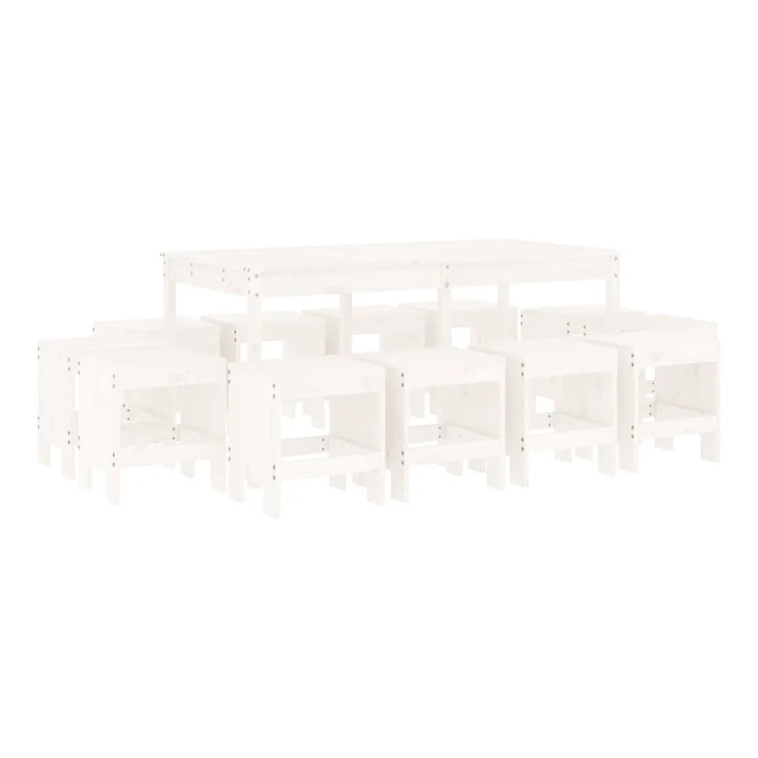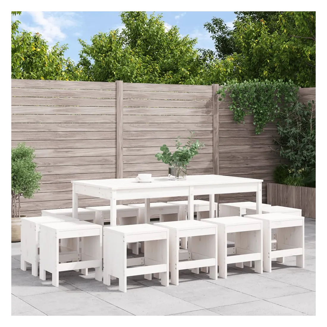 Ensemble à manger de jardin 13 pcs blanc bois de pin massif