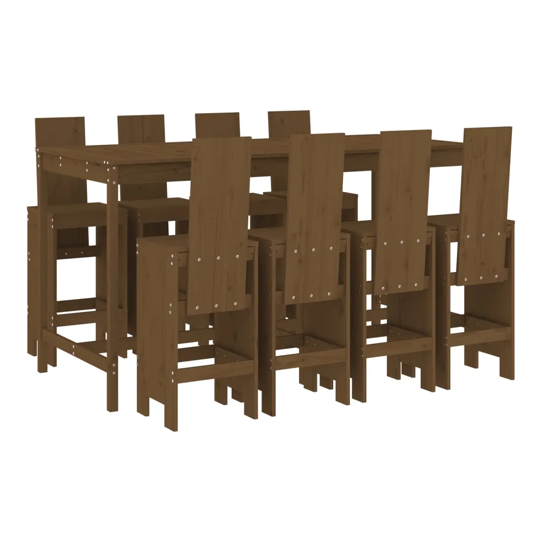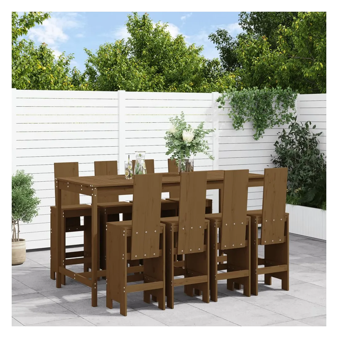 Prenez une gorgée de votre boisson préférée ou profitez d'un bon repas avec votre famille et vos amis autour de cet ensemble de bar de jardin en bois ! Bois de pin massif : cet ensemble de bar est fabriqué en bois de pin massif. le bois de pin massif est un matériau naturel magnifique. Le bois de pin a un grain droit et les nœuds donnent au matériau son aspect caractéristique et rustique.Dessus robuste : la table de bar de l'ensemble de pub est dotée d'un dessus robuste, parfait pour placer vos boissons, vos aliments et autres objets décoratifs.Assise confortable : le dossier et le repose-pieds du tabouret de bar en bois offrent une assise confortable pour détendre votre dos et vos jambes.Nombreuses applications : avec son design minimaliste, l'ensemble de bar de terrasse peut être intégré dans n'importe quel coin du jardin, terrasse, balcon, jardin, etc. Bon à savoir :Pour que vos meubles d'extérieur restent beaux, nous vous recommandons de les protéger avec une housse imperméable.