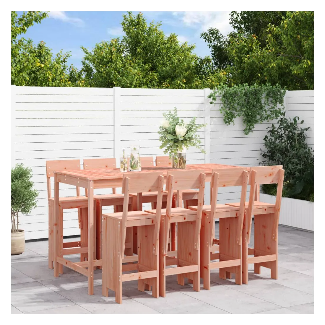 Prenez une gorgée de votre boisson préférée ou profitez d'un bon repas avec votre famille et vos amis autour de cet ensemble de bar de jardin en bois ! Bois de Douglas massif : cet ensemble de bar est fabriqué en bois de Douglas massif. Le bois de Douglas massif est un bois très durable qui fonctionne bien à l'extérieur. Le bois de Douglas est également assez solide pour l'utiliser avec un minimum de soins, même sous l'influence des intempéries.Dessus robuste : la table de bar de l'ensemble de pub est dotée d'un dessus robuste, parfait pour placer vos boissons, vos aliments et autres objets décoratifs.Assise confortable : le dossier et le repose-pieds du tabouret de bar en bois offrent une assise confortable pour détendre votre dos et vos jambes.Nombreuses applications : avec son design minimaliste, l'ensemble de bar de terrasse peut être intégré dans n'importe quel coin du jardin, terrasse, balcon, jardin, etc. Bon à savoir :Pour que vos meubles d'extérieur restent beaux, nous vous recommandons de les protéger avec une housse imperméable.