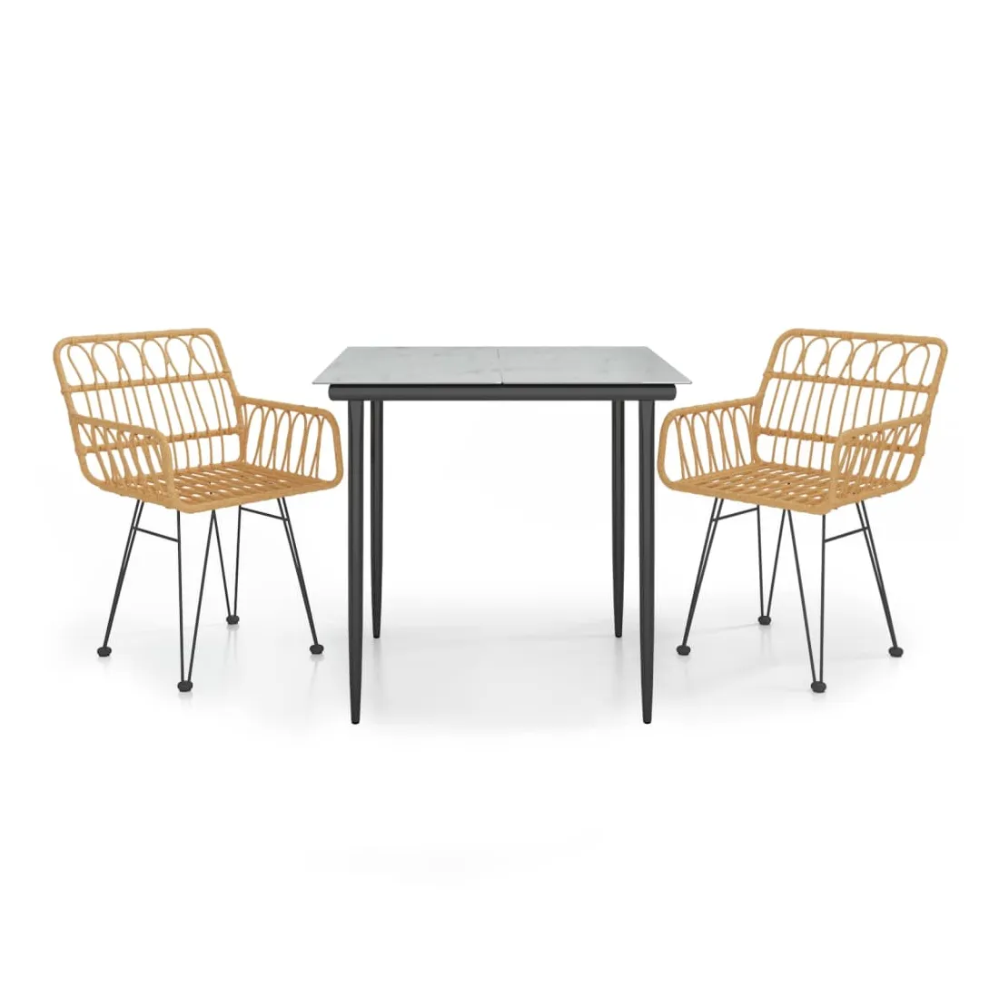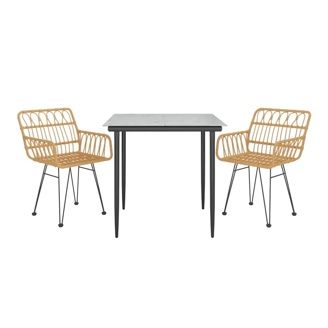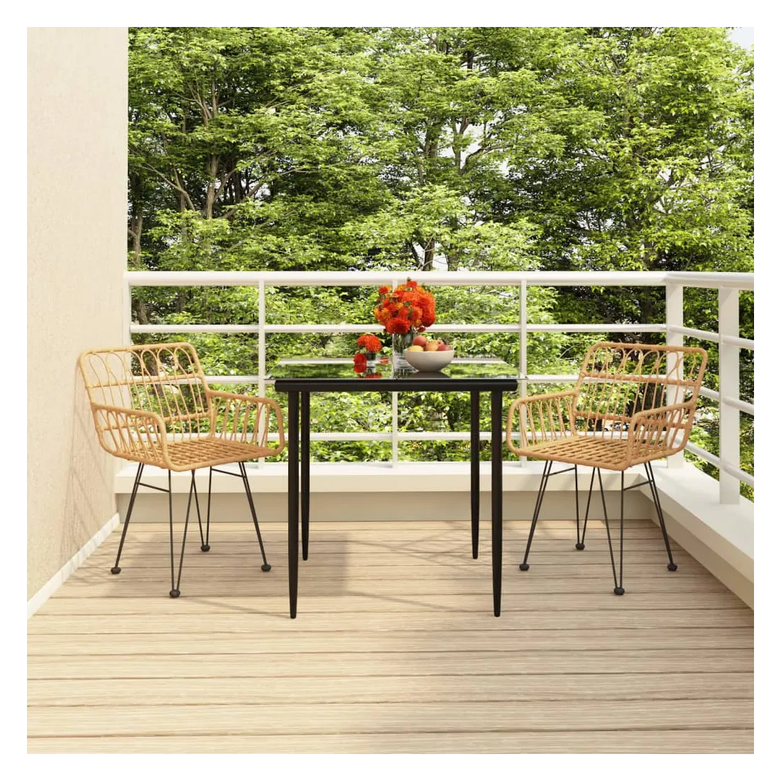 Créez une esthétique convaincante et uniforme dans votre espace extérieur avec cet ensemble de salle à manger de jardin ! Matériau durable : la résine tressée, également connue sous le nom de rotin poly, résiste aux intempéries et est facile à nettoyer. Elle reste belle à l'extérieur pendant une longue période. Elle offre une excellente qualité, commodité et un aspect esthétique.Cadre robuste et stable : les cadres en acier rendent l'ensemble de terrasse robuste et stable pour une utilisation quotidienne à l'extérieur.Dessus de table pratique : le dessus lisse de la table de salle à manger est en verre trempé, facile à nettoyer avec un chiffon humide. De plus, le dessus robuste est parfait pour placer des repas, des boissons et d'autres objets décoratifs.Assise confortable : la chaise de salle à manger est conçue avec un dossier et des accoudoirs pour vous offrir une expérience d'assise confortable.Bouchons de pieds pratiques : l'ensemble de bistro est livré avec des bouchons de pieds qui l'aident à se tenir plus fermement au sol. Remarque :Afin de prolonger la durée de vie de votre mobilier d'extérieur, nous vous recommandons de le protéger avec une housse imperméable.Chaque produit est livré avec un manuel de montage dans la boîte pour un montage facile.