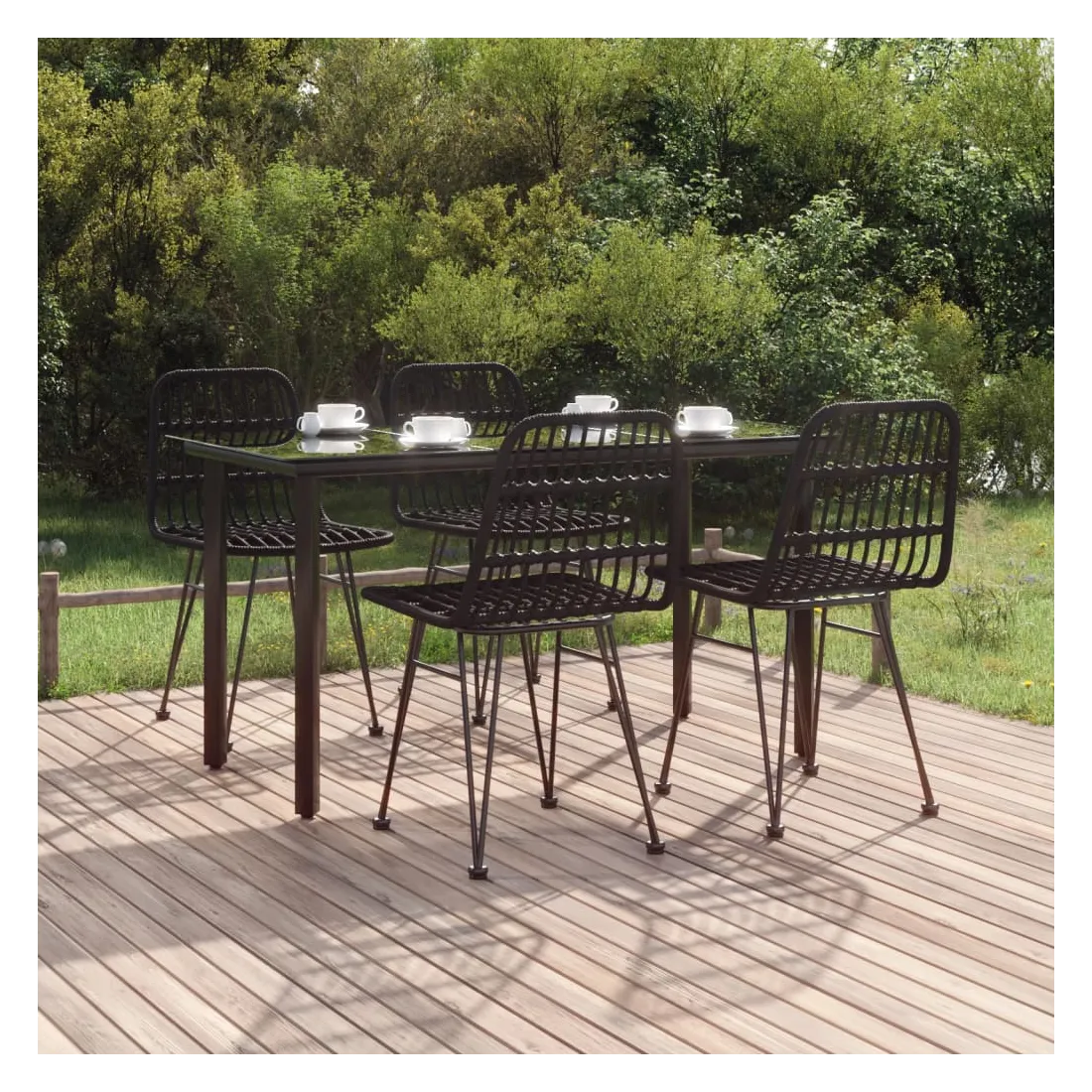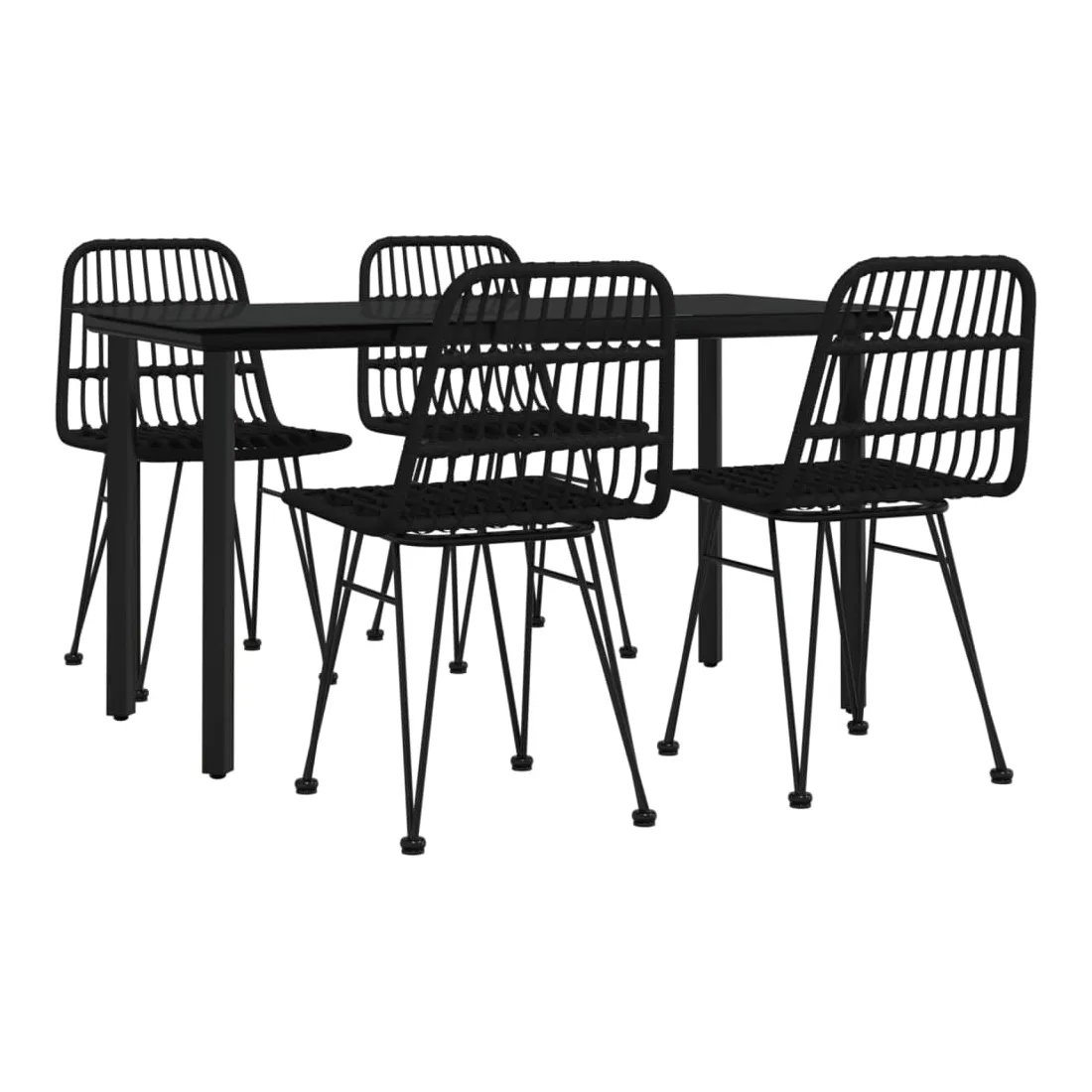 Ensemble à manger de jardin 5 pcs Noir Résine tressée