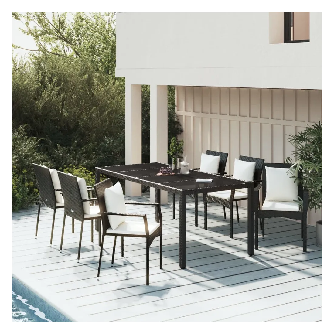 Cet ensemble de salle à manger de jardin tendance, au design élégant et contemporain, est un excellent choix pour manger ou vous détendre dans votre jardin. Matériau résistant aux intempéries : la résine tressée, également connue sous le nom de rotin poly, résiste aux intempéries et est facile à nettoyer. Elle reste belle à l'extérieur pendant une longue période. Elle offre une excellente qualité, commodité et un aspect esthétique.Cadre robuste : les cadres en acier enduit de poudre rendent l'ensemble de salle à manger d'extérieur robuste et stable pour une utilisation quotidienne à l'extérieur.Dessus de table pratique : le dessus de table en bois d'acacia massif est parfait pour placer des boissons, des aliments et des décorations. Il a une belle apparence et est facile à nettoyer.Conception modulaire : l'ensemble de salle à manger de jardin est flexible et facile à déplacer, vous pouvez donc le combiner avec d'autres segments modulaires dans la boutique en ligne pour créer vos propres configurations d'ensemble de salle à manger de jardin !Expérience d'assise confortable : le dossier ajoute un confort d'assise supplémentaire à la chaise de jardin. De plus, les coussins bien rembourrés vous permettent de vous asseoir confortablement. Bon à savoir :Pour faciliter au maximum le montage, chaque produit est livré avec des instructions. Remarque :Pour que vos meubles d'extérieur restent beaux, nous vous recommandons de les protéger avec une housse imperméable.