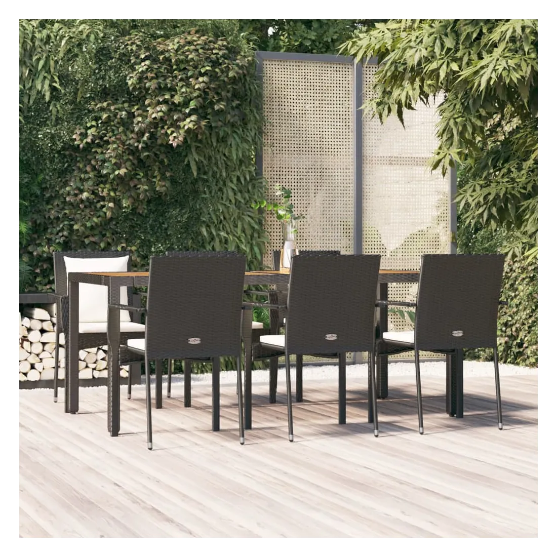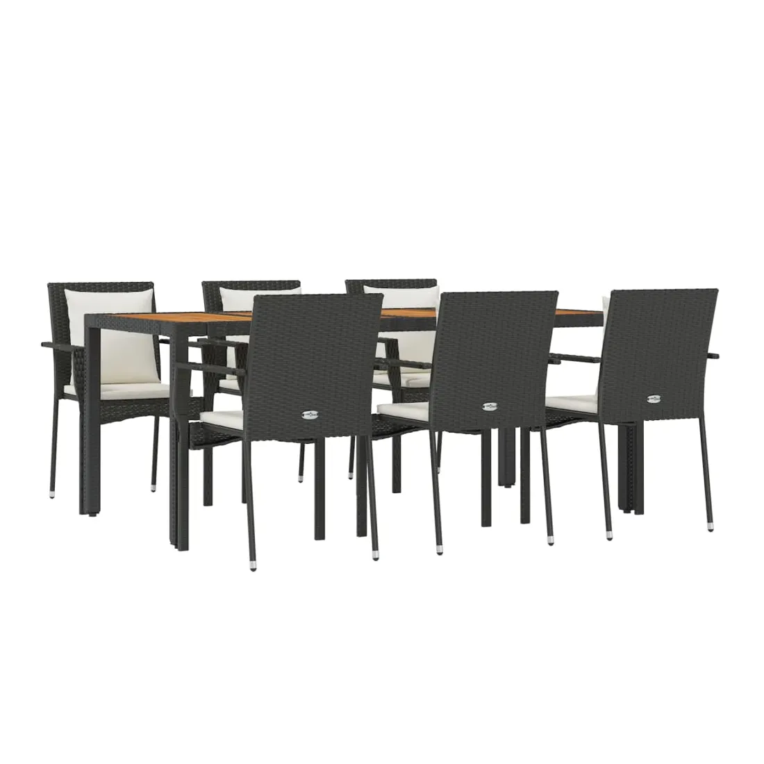 Cet ensemble de salle à manger de jardin tendance, au design élégant et contemporain, est un excellent choix pour manger ou vous détendre dans votre jardin. Matériau résistant aux intempéries : la résine tressée, également connue sous le nom de rotin poly, résiste aux intempéries et est facile à nettoyer. Elle reste belle à l'extérieur pendant une longue période. Elle offre une excellente qualité, commodité et un aspect esthétique.Cadre robuste : les cadres en acier enduit de poudre rendent l'ensemble de salle à manger d'extérieur robuste et stable pour une utilisation quotidienne à l'extérieur.Dessus de table pratique : le dessus de table en bois d'acacia massif est parfait pour placer des boissons, des aliments et des décorations. Il a une belle apparence et est facile à nettoyer.Conception modulaire : l'ensemble de salle à manger de jardin est flexible et facile à déplacer, vous pouvez donc le combiner avec d'autres segments modulaires dans la boutique en ligne pour créer vos propres configurations d'ensemble de salle à manger de jardin !Expérience d'assise confortable : le dossier ajoute un confort d'assise supplémentaire à la chaise de jardin. De plus, les coussins bien rembourrés vous permettent de vous asseoir confortablement. Bon à savoir :Pour faciliter au maximum le montage, chaque produit est livré avec des instructions. Remarque :Pour que vos meubles d'extérieur restent beaux, nous vous recommandons de les protéger avec une housse imperméable.