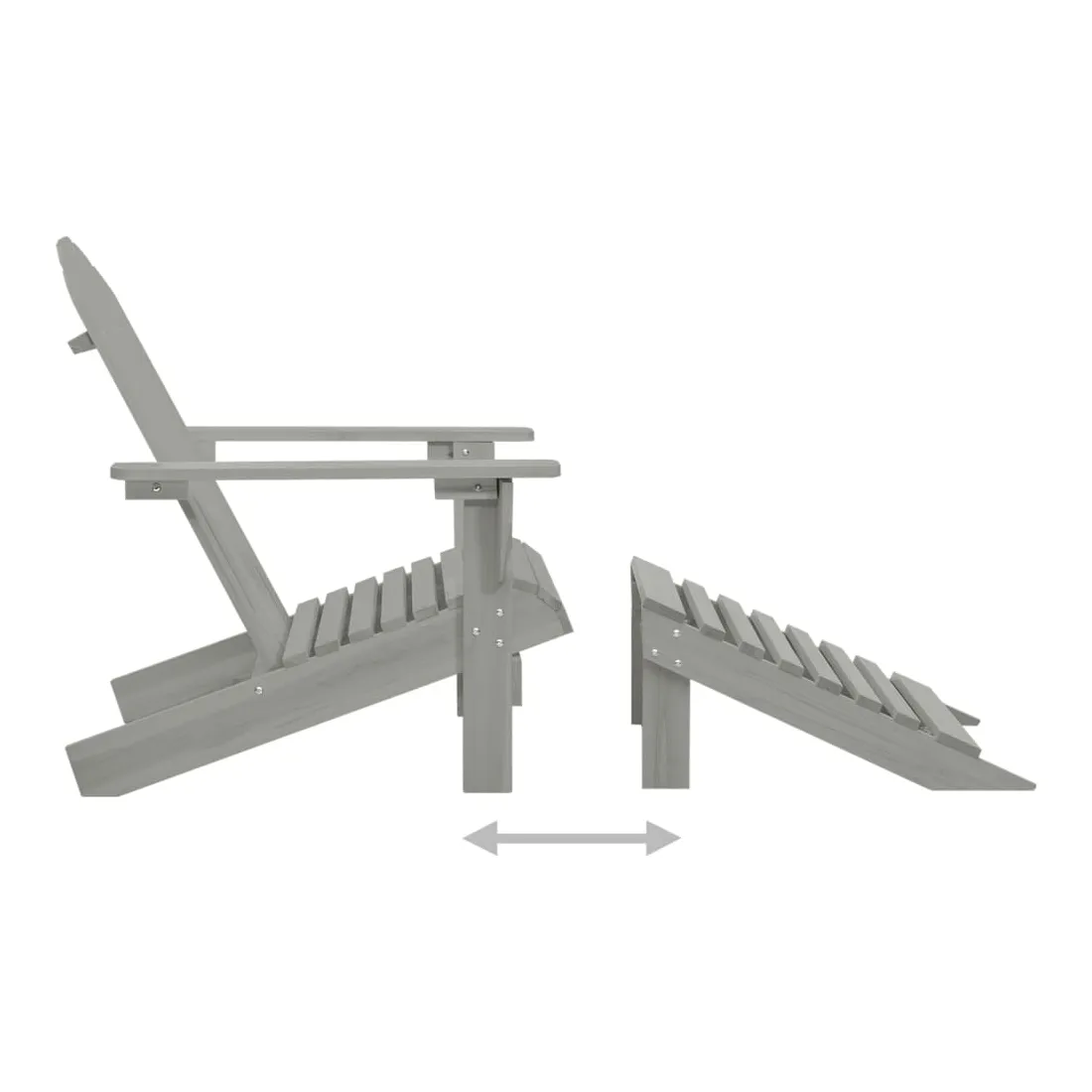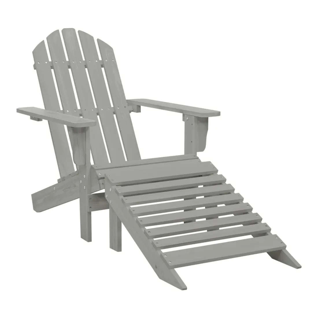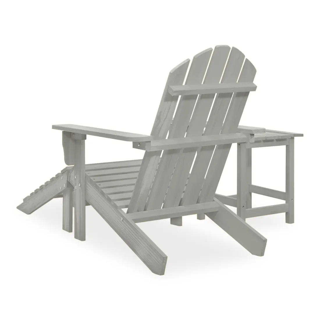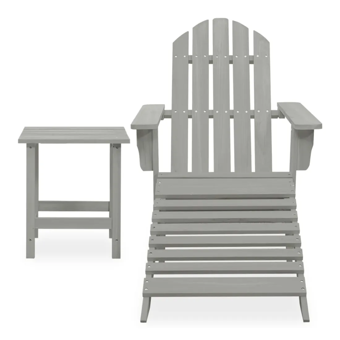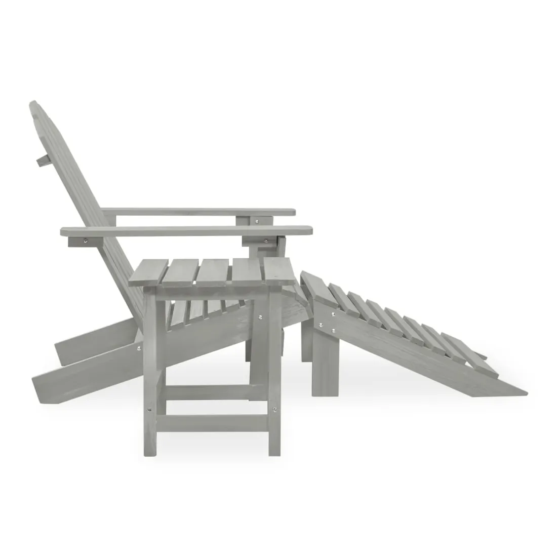 Détendez-vous dans le jardin ou sur la terrasse dans cette chaise Adirondack tendance et confortable avec pouf et table ! Cette chaise de jardin avec pouf et table, fabriquée en bois de sapin massif, présente un cadre robuste et est stable, ce qui la rend facile à entretenir et résistante aux intempéries. La table vous permet de placer votre téléphone, vos lunettes de soleil, vos boissons et autres petits objets. La structure de conception ergonomique assure également un confort optimal. De plus, le pouf est détachable et peut fournir un soutien supplémentaire pour vos pieds. Avec un design élégant et intemporel, ce sera un supplément pratique et classique à votre espace de vie extérieur. Remarque : afin de prolonger la durée de vie des meubles d'extérieur, nous vous recommandons de les protéger avec une housse imperméable.