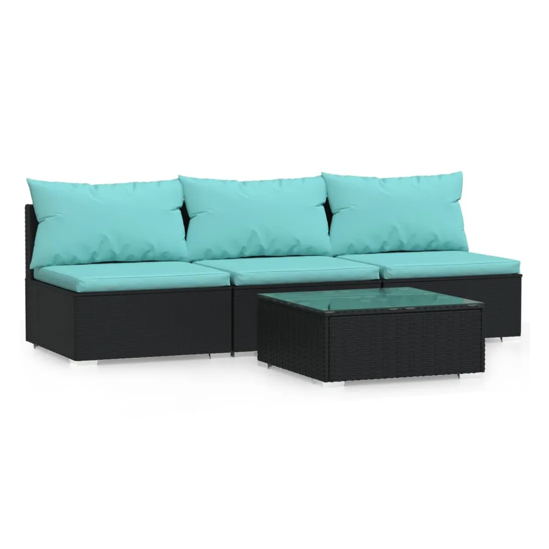 Salon de jardin 4 pcs avec coussins Noir Résine tressée