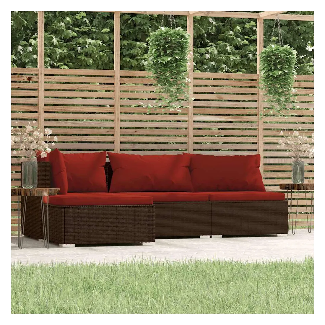 Détendez-vous et profitez de vos loisirs avec cet ensemble de meubles de jardin très tendance ! Il est conçu pour répondre à une variété de vos différents besoins. Cadre robuste : cet ensemble de meubles de patio est doté d'un cadre solide en acier enduit de poudre et de pieds en plastique chromé, ce qui est très durable.Matériau haut de gamme : le canapé de jardin est conçu avec de la résine tressée résistante à l'eau, ce qui le rend facile à nettoyer, résistant à l'usure et adapté à une utilisation quotidienne à l'extérieur.Design modulaire : la conception modulaire permet de placer l'ensemble dans n'importe quelle disposition ou de le combiner avec d'autres segments modulaires pour répondre à vos besoins.Coussins et oreillers confortables : les coussins et les oreillers bien rembourrés et amovibles offrent un confort optimal pour votre assise en plein air. Remarque :Afin de prolonger la durée de vie de votre mobilier d'extérieur, nous vous recommandons de le protéger avec une housse imperméable.