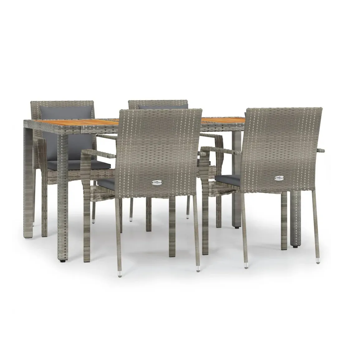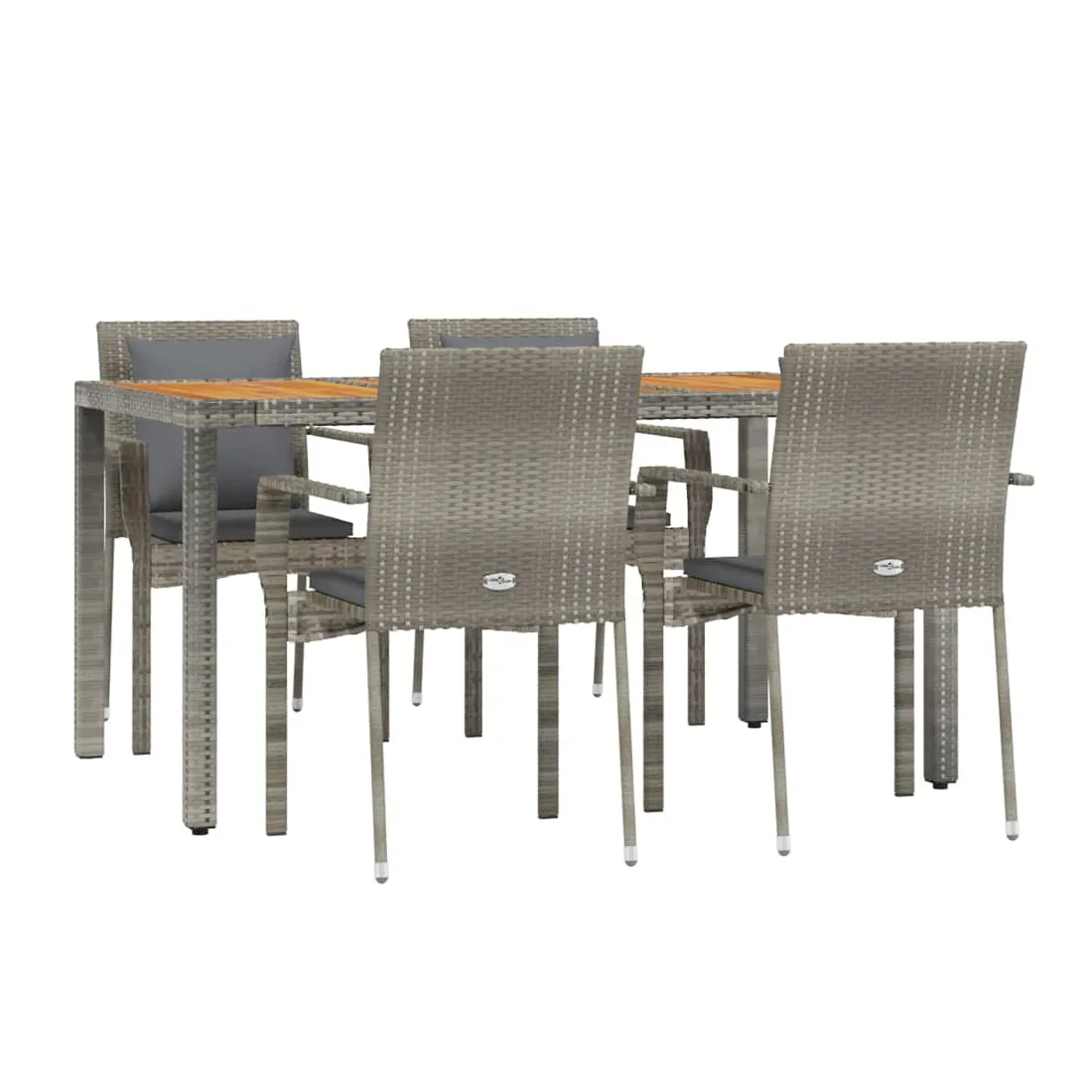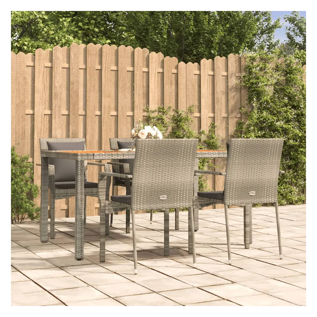 Cet ensemble de salle à manger de jardin tendance, au design élégant et contemporain, est un excellent choix pour manger ou vous détendre dans votre jardin. Matériau résistant aux intempéries : la résine tressée, également connue sous le nom de rotin poly, résiste aux intempéries et est facile à nettoyer. Elle reste belle à l'extérieur pendant une longue période. Elle offre une excellente qualité, commodité et un aspect esthétique.Cadre robuste : les cadres en acier enduit de poudre rendent l'ensemble de salle à manger d'extérieur robuste et stable pour une utilisation quotidienne à l'extérieur.Dessus de table pratique : le dessus de table en bois d'acacia massif est parfait pour placer des boissons, des aliments et des décorations. Il a une belle apparence et est facile à nettoyer.Conception modulaire : l'ensemble de salle à manger de jardin est flexible et facile à déplacer, vous pouvez donc le combiner avec d'autres segments modulaires dans la boutique en ligne pour créer vos propres configurations d'ensemble de salle à manger de jardin !Expérience d'assise confortable : le dossier ajoute un confort d'assise supplémentaire à la chaise de jardin. De plus, les coussins bien rembourrés vous permettent de vous asseoir confortablement. Bon à savoir :Pour faciliter au maximum le montage, chaque produit est livré avec des instructions. Remarque :Pour que vos meubles d'extérieur restent beaux, nous vous recommandons de les protéger avec une housse imperméable.