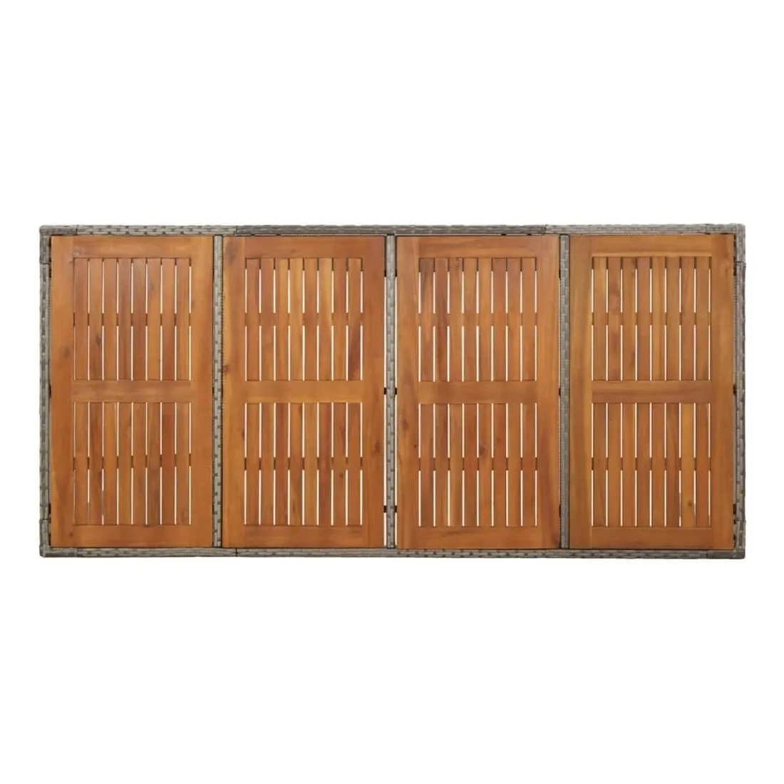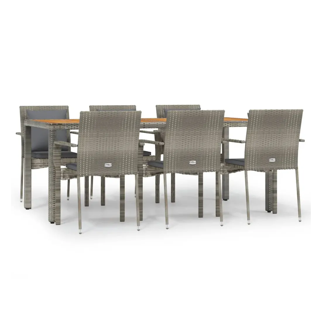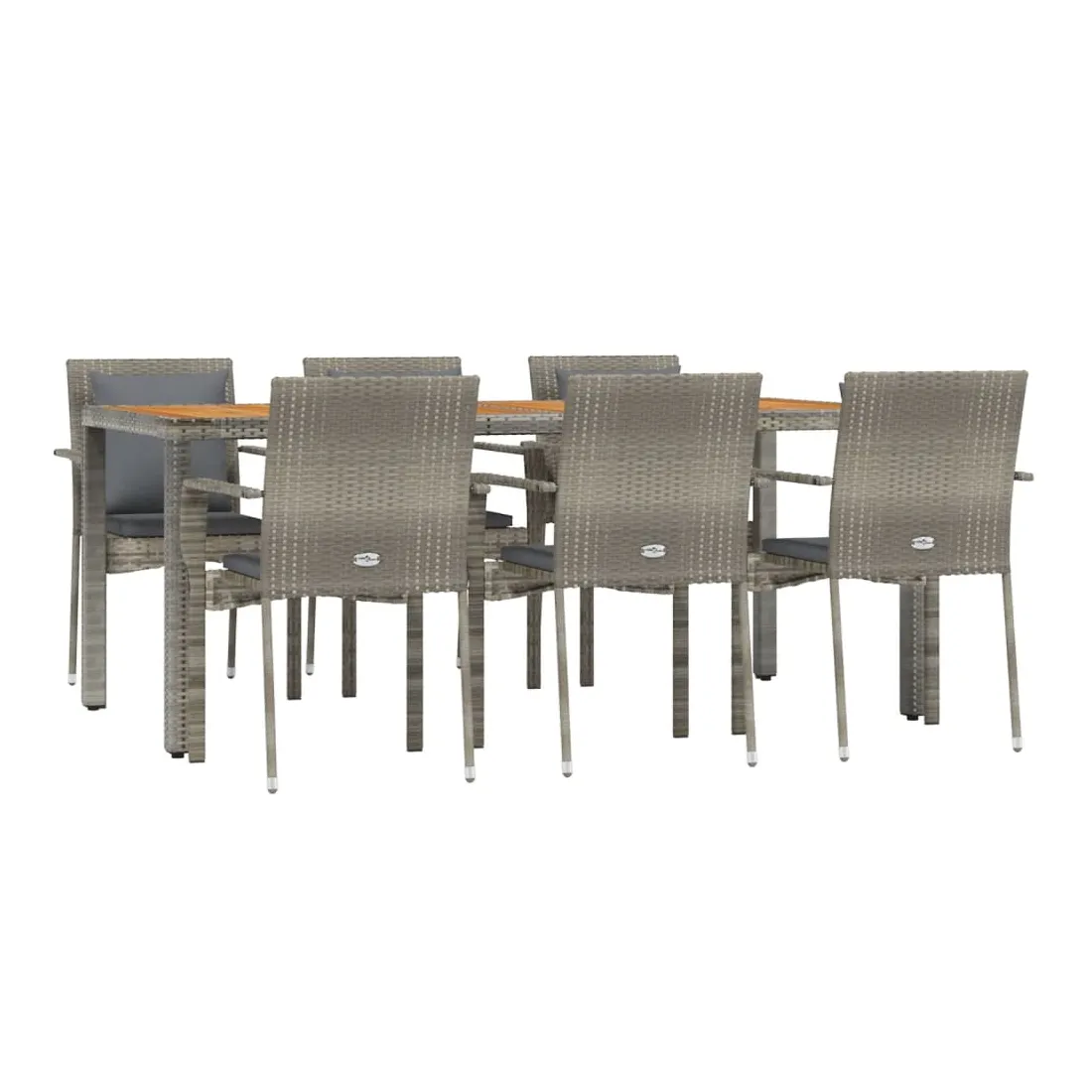 Cet ensemble de salle à manger de jardin tendance, au design élégant et contemporain, est un excellent choix pour manger ou vous détendre dans votre jardin. Matériau résistant aux intempéries : la résine tressée, également connue sous le nom de rotin poly, résiste aux intempéries et est facile à nettoyer. Elle reste belle à l'extérieur pendant une longue période. Elle offre une excellente qualité, commodité et un aspect esthétique.Cadre robuste : les cadres en acier enduit de poudre rendent l'ensemble de salle à manger d'extérieur robuste et stable pour une utilisation quotidienne à l'extérieur.Dessus de table pratique : le dessus de table en bois d'acacia massif est parfait pour placer des boissons, des aliments et des décorations. Il a une belle apparence et est facile à nettoyer.Conception modulaire : l'ensemble de salle à manger de jardin est flexible et facile à déplacer, vous pouvez donc le combiner avec d'autres segments modulaires dans la boutique en ligne pour créer vos propres configurations d'ensemble de salle à manger de jardin !Expérience d'assise confortable : le dossier ajoute un confort d'assise supplémentaire à la chaise de jardin. De plus, les coussins bien rembourrés vous permettent de vous asseoir confortablement. Bon à savoir :Pour faciliter au maximum le montage, chaque produit est livré avec des instructions. Remarque :Pour que vos meubles d'extérieur restent beaux, nous vous recommandons de les protéger avec une housse imperméable.