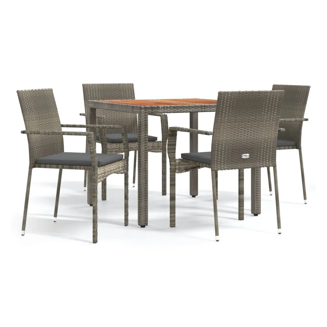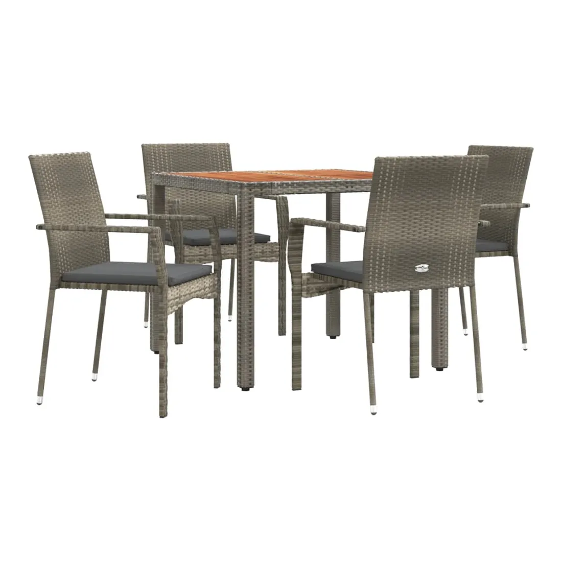 Ensemble à manger de jardin 5 pcs coussins gris résine tressée