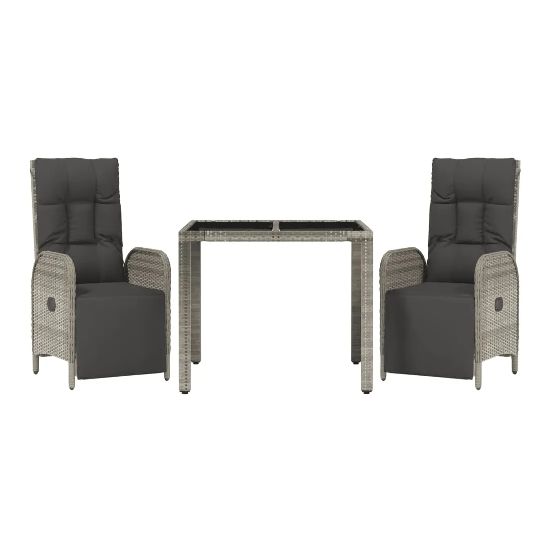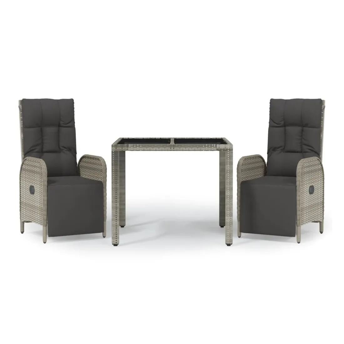 Ensemble à manger de jardin 3 pcs coussins gris résine tressée