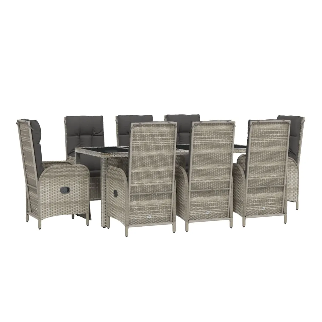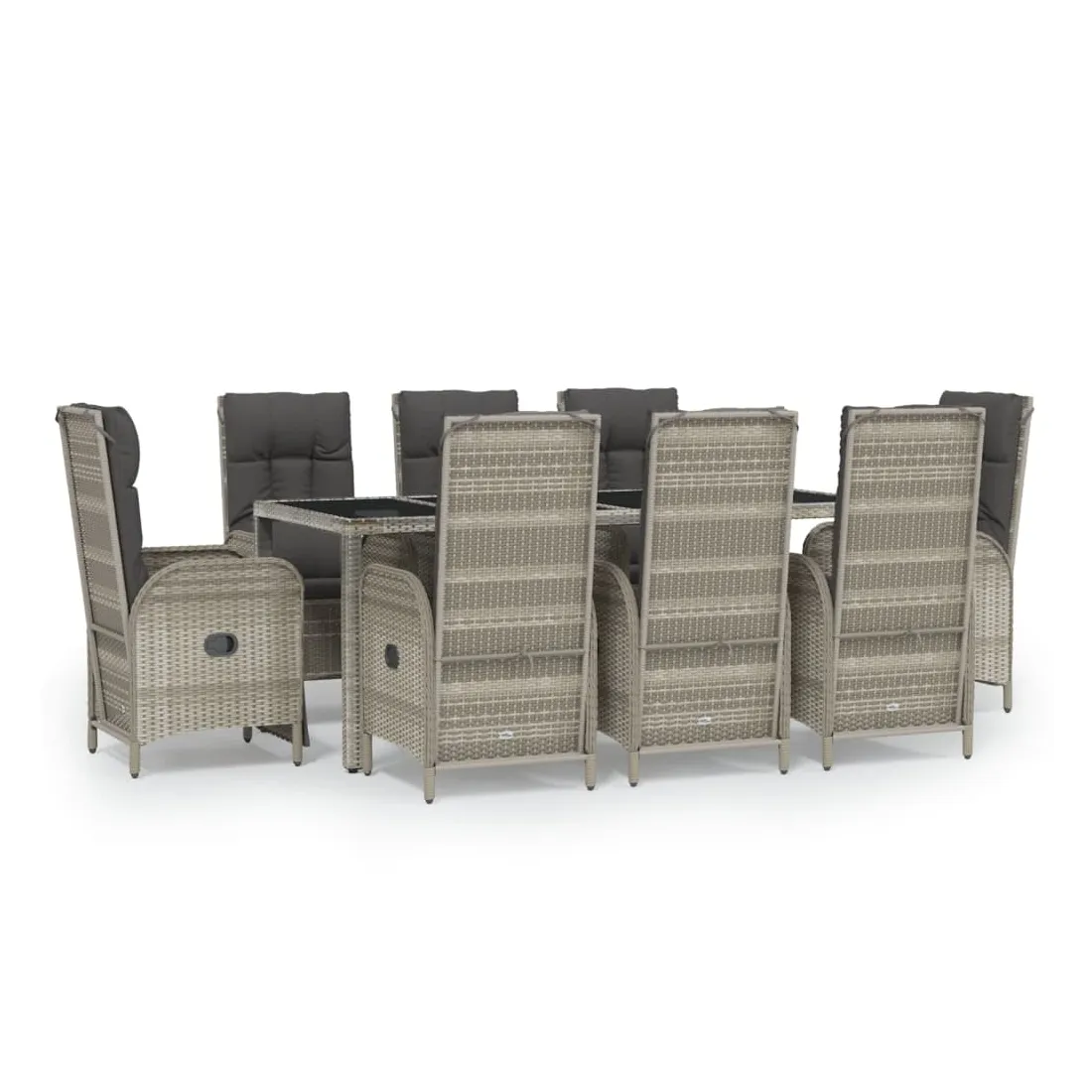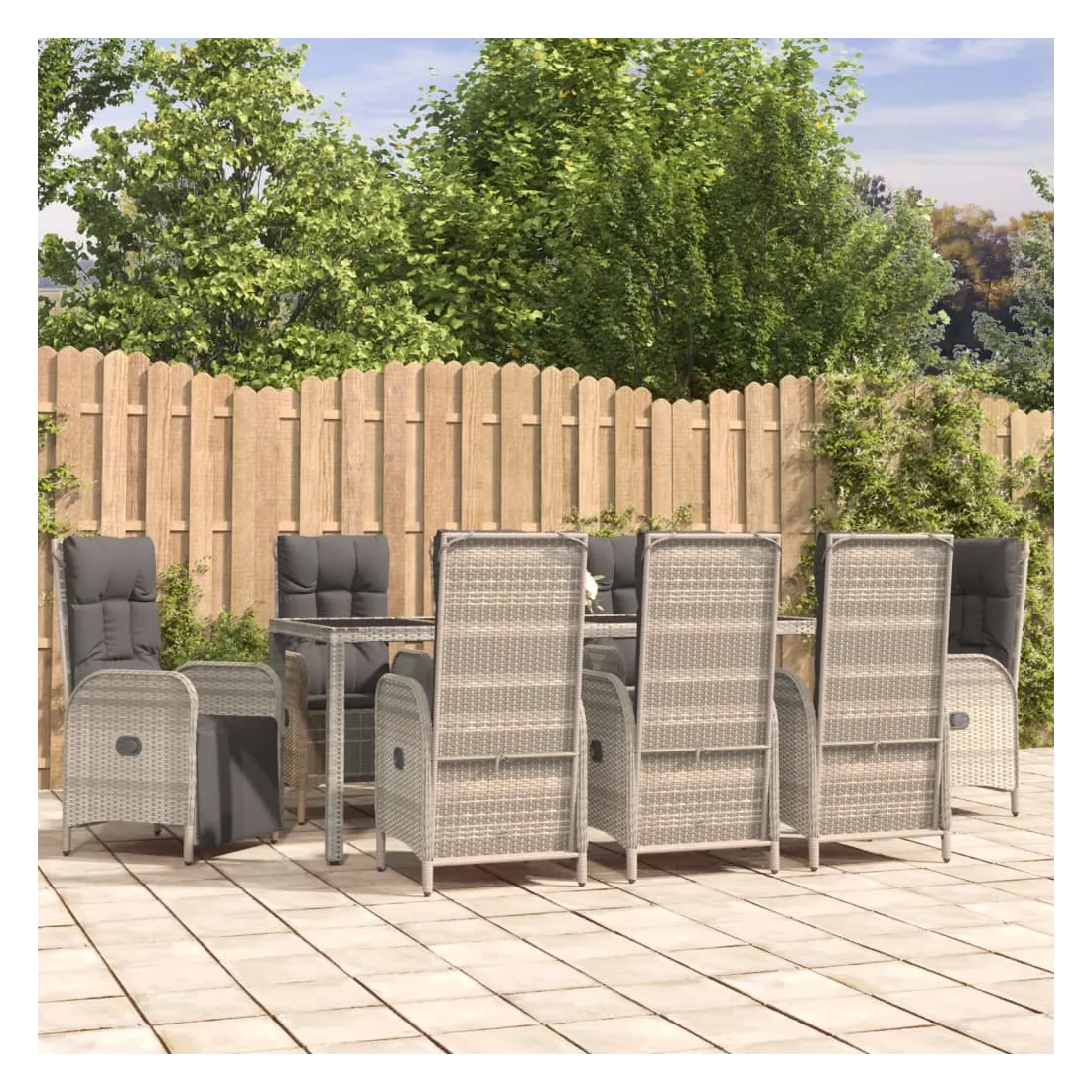 Cet ensemble de salle à manger de jardin tendance, au design élégant et contemporain, est un excellent choix pour manger ou vous détendre dans votre jardin. Matériau résistant aux intempéries : la résine tressée, également connue sous le nom de rotin poly, résiste aux intempéries et est facile à nettoyer. Elle reste belle à l'extérieur pendant une longue période. Elle offre une excellente qualité, commodité et un aspect esthétique.Cadre robuste : les cadres en acier enduit de poudre rendent l'ensemble de salle à manger d'extérieur robuste et stable pour une utilisation quotidienne à l'extérieur.Dessus de table pratique : le dessus de table en bois d'acacia massif est parfait pour placer des boissons, des aliments et des décorations. Il a une belle apparence et est facile à nettoyer.Fonction d'inclinaison : les chaises de jardin sont spécialement conçues avec une fonction d'inclinaison afin que vous puissiez régler le dossier selon votre confort.Expérience d'assise confortable : le dossier ajoute un confort d'assise supplémentaire à la chaise de jardin. De plus, les coussins bien rembourrés vous permettent de vous asseoir confortablement. Bon à savoir :Pour faciliter au maximum le montage, chaque produit est livré avec des instructions. Remarque :Pour que vos meubles d'extérieur restent beaux, nous vous recommandons de les protéger avec une housse imperméable.