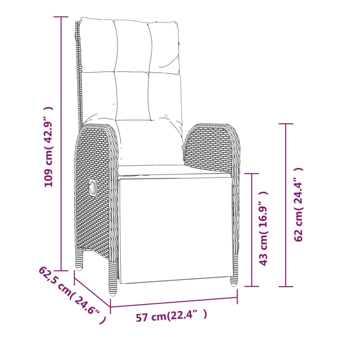 - Dimensions du coussin de siège : 50 x 47 x 3 cm (l x P x é)