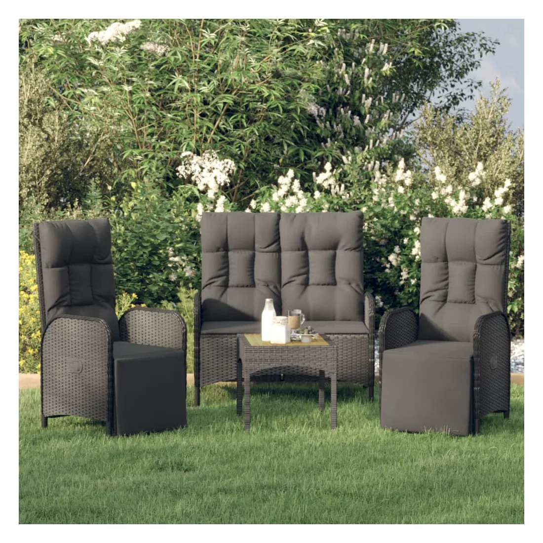 Cet ensemble de salle à manger de jardin tendance, au design élégant et contemporain, est un excellent choix pour manger ou vous détendre dans votre jardin. Matériau résistant aux intempéries : la résine tressée, également connue sous le nom de rotin poly, résiste aux intempéries et est facile à nettoyer. Elle reste belle à l'extérieur pendant une longue période. Elle offre une excellente qualité, commodité et un aspect esthétique.Cadre robuste : les cadres en acier enduit de poudre rendent l'ensemble de salle à manger d'extérieur robuste et stable pour une utilisation quotidienne à l'extérieur.Dessus de table pratique : le dessus lisse de la table de jardin est en verre trempé, facile à nettoyer avec un chiffon humide. De plus, le dessus robuste est parfait pour placer des repas, des boissons et d'autres objets décoratifs.Fonction d'inclinaison : les chaises de jardin sont spécialement conçues avec une fonction d'inclinaison afin que vous puissiez régler le dossier selon votre confort.Expérience d'assise confortable : le dossier ajoute un confort d'assise supplémentaire à la chaise de jardin. De plus, les coussins bien rembourrés vous permettent de vous asseoir confortablement. Bon à savoir :Pour faciliter au maximum le montage, chaque produit est livré avec des instructions. Remarque :Pour que vos meubles d'extérieur restent beaux, nous vous recommandons de les protéger avec une housse imperméable.