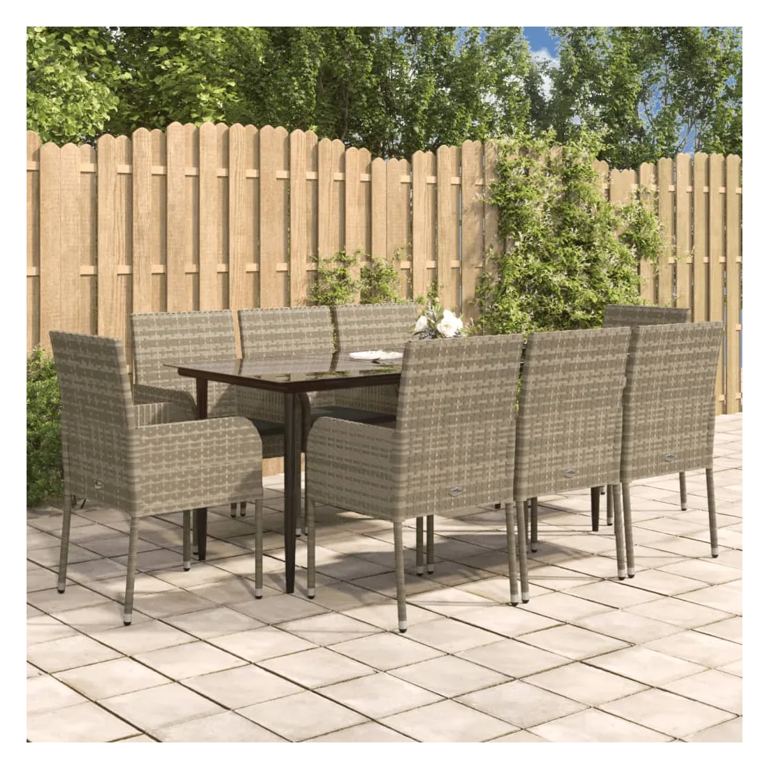 Cet ensemble de salle à manger de jardin tendance, au design élégant et contemporain, est un excellent choix pour manger ou vous détendre dans votre jardin. Matériau résistant aux intempéries : la résine tressée, également connue sous le nom de rotin poly, résiste aux intempéries et est facile à nettoyer. Elle reste belle à l'extérieur pendant une longue période. Elle offre une excellente qualité, commodité et un aspect esthétique.Cadre robuste : les cadres en acier enduit de poudre rendent l'ensemble de salle à manger d'extérieur robuste et stable pour une utilisation quotidienne à l'extérieur.Dessus de table pratique : le dessus de table en bois d'acacia massif est parfait pour placer des boissons, des aliments et des décorations. Il a une belle apparence et est facile à nettoyer.Conception modulaire : l'ensemble de salle à manger de jardin est flexible et facile à déplacer, vous pouvez donc le combiner avec d'autres segments modulaires dans la boutique en ligne pour créer vos propres configurations d'ensemble de salle à manger de jardin !Expérience d'assise confortable : le dossier ajoute un confort d'assise supplémentaire à la chaise de jardin. De plus, les coussins bien rembourrés vous permettent de vous asseoir confortablement. Bon à savoir :Pour faciliter au maximum le montage, chaque produit est livré avec des instructions. Remarque :Pour que vos meubles d'extérieur restent beaux, nous vous recommandons de les protéger avec une housse imperméable.