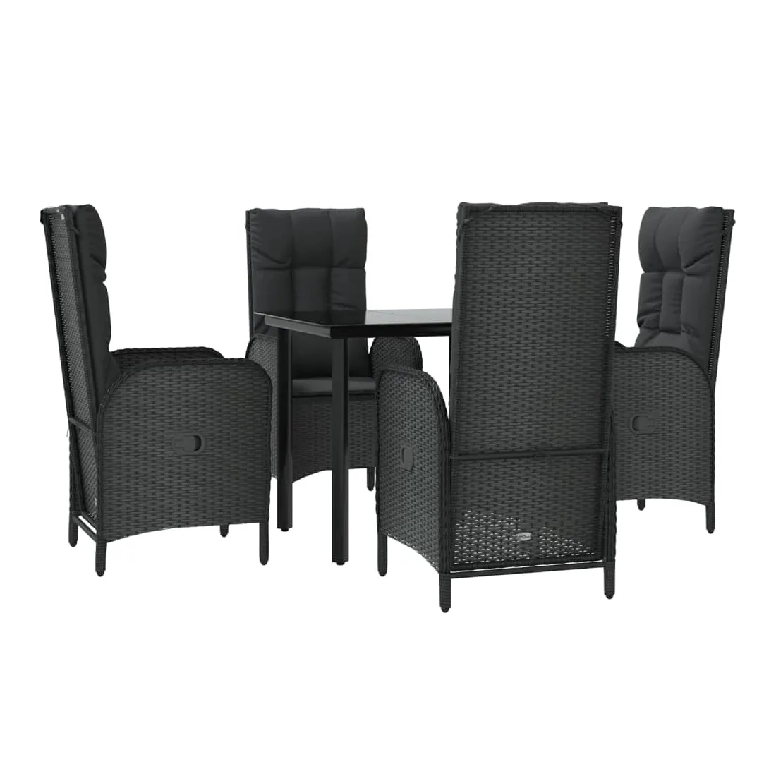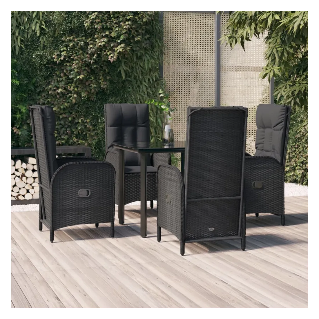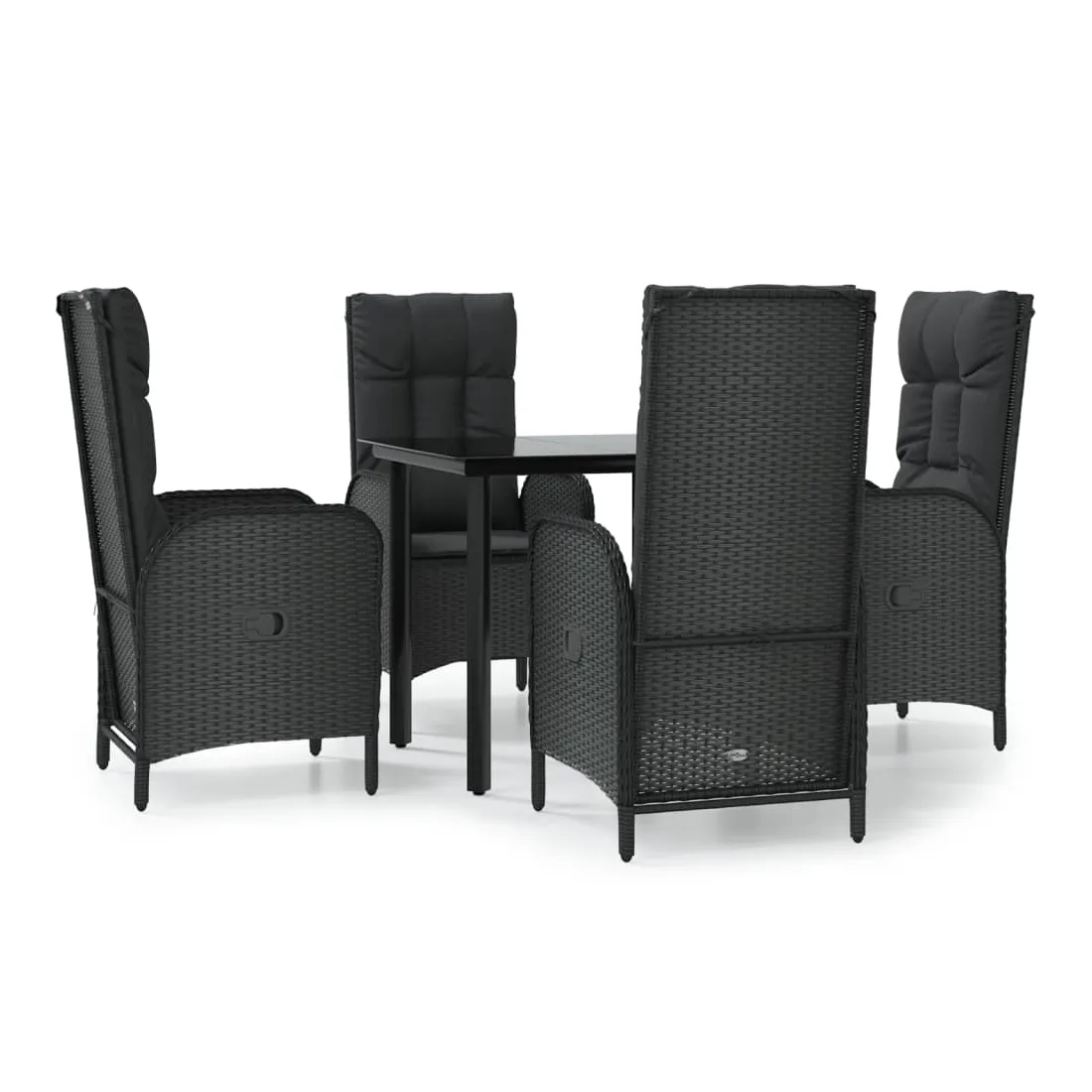Ensemble à manger de jardin coussins 5pcs Noir Résine tressée