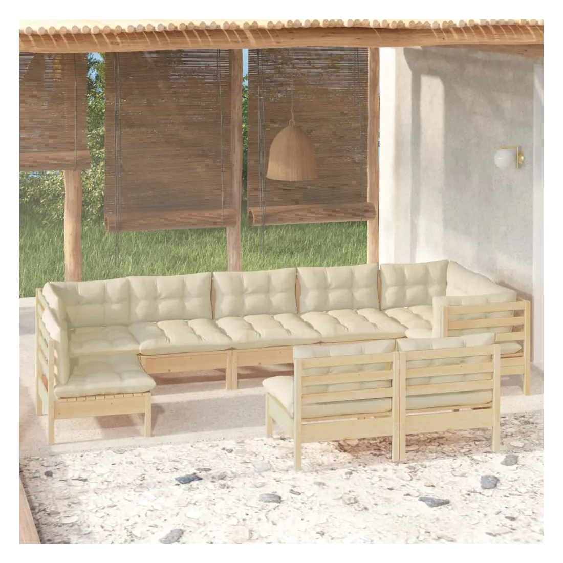 Ce salon de jardin est un excellent choix pour vous détendre et profiter du beau temps, faire une sieste ou discuter avec votre famille ou vos amis. Le salon de patio est fabriqué en bois de pin massif, ce qui le rend robuste et stable. Les coussins ajoutent un confort supplémentaire. Vous pouvez le combiner avec d’autres segments modulaires pour créer vos propres configurations de salon de jardin ! Remarque : afin de prolonger la durée de vie des meubles d'extérieur, nous vous recommandons de les protéger avec une housse imperméable.