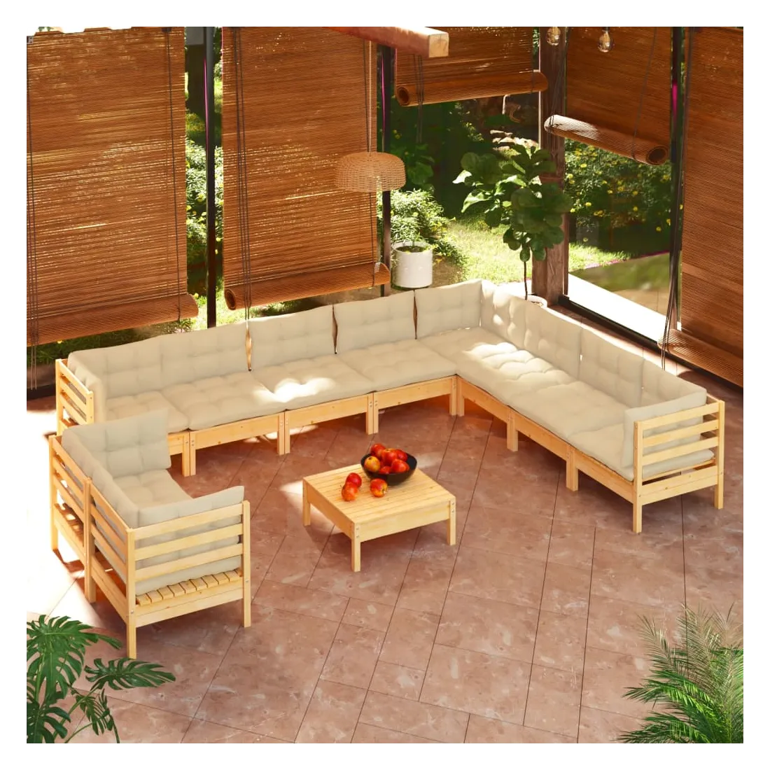 Ce salon de jardin est un excellent choix pour vous détendre et profiter du beau temps, faire une sieste ou discuter avec votre famille ou vos amis. Le salon de patio est fabriqué en bois de pin massif, ce qui le rend robuste et stable. Les coussins ajoutent un confort supplémentaire. Vous pouvez le combiner avec d’autres segments modulaires pour créer vos propres configurations de salon de jardin ! Remarque : afin de prolonger la durée de vie des meubles d'extérieur, nous vous recommandons de les protéger avec une housse imperméable.