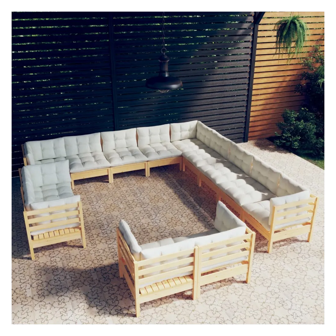 Ce salon de jardin est un excellent choix pour vous détendre et profiter du beau temps, faire une sieste ou discuter avec votre famille ou vos amis. Le salon de patio est fabriqué en bois de pin massif, ce qui le rend robuste et stable. Les coussins ajoutent un confort supplémentaire. Vous pouvez le combiner avec d’autres segments modulaires pour créer vos propres configurations de salon de jardin ! Remarque : afin de prolonger la durée de vie des meubles d'extérieur, nous vous recommandons de les protéger avec une housse imperméable.