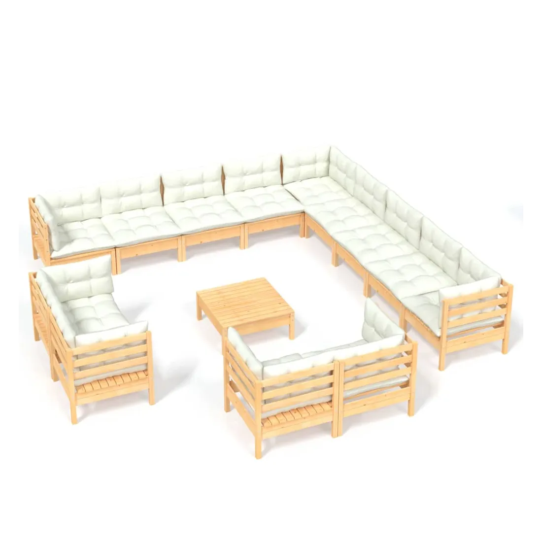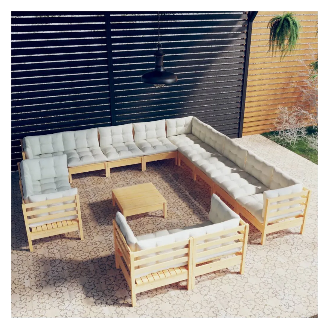 Ce salon de jardin est un excellent choix pour vous détendre et profiter du beau temps, faire une sieste ou discuter avec votre famille ou vos amis. Le salon de patio est fabriqué en bois de pin massif, ce qui le rend robuste et stable. Les coussins ajoutent un confort supplémentaire. Vous pouvez le combiner avec d’autres segments modulaires pour créer vos propres configurations de salon de jardin ! Remarque : afin de prolonger la durée de vie des meubles d'extérieur, nous vous recommandons de les protéger avec une housse imperméable.