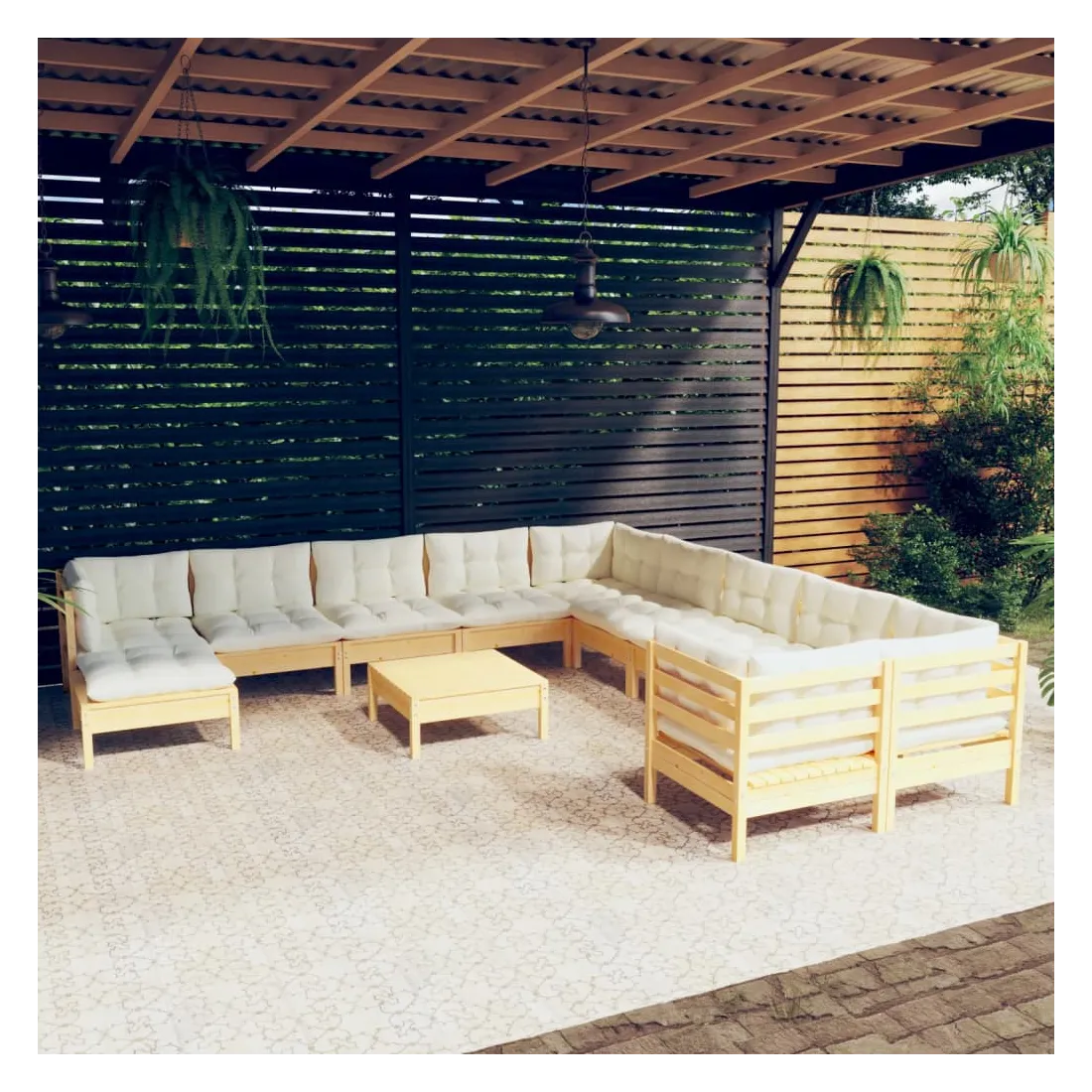 Cet ensemble de salon de jardin en bois est un choix excellent pour vous détendre et profiter du bon temps, faire une sieste ou discuter avec votre famille ou vos amis. Le salon de patio est fabriqué en bois de pin massif, ce qui le rend robuste et stable. Les coussins ajoutent un confort supplémentaire. Vous pouvez le combiner avec d’autres segments modulaires pour créer vos propres configurations de salon de jardin ! Remarque : afin de prolonger la durée de vie des meubles d'extérieur, nous vous recommandons de les protéger avec une housse imperméable.