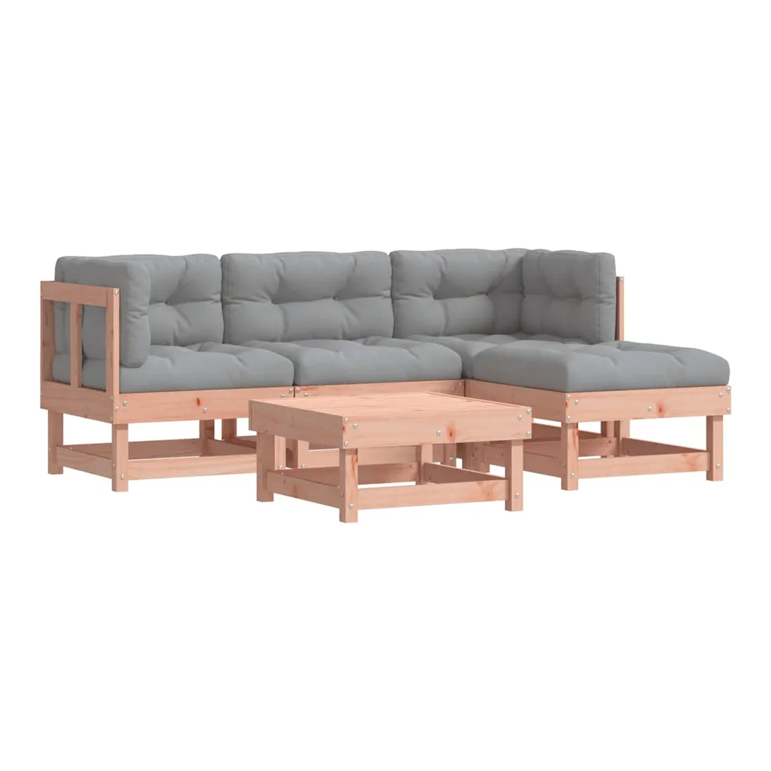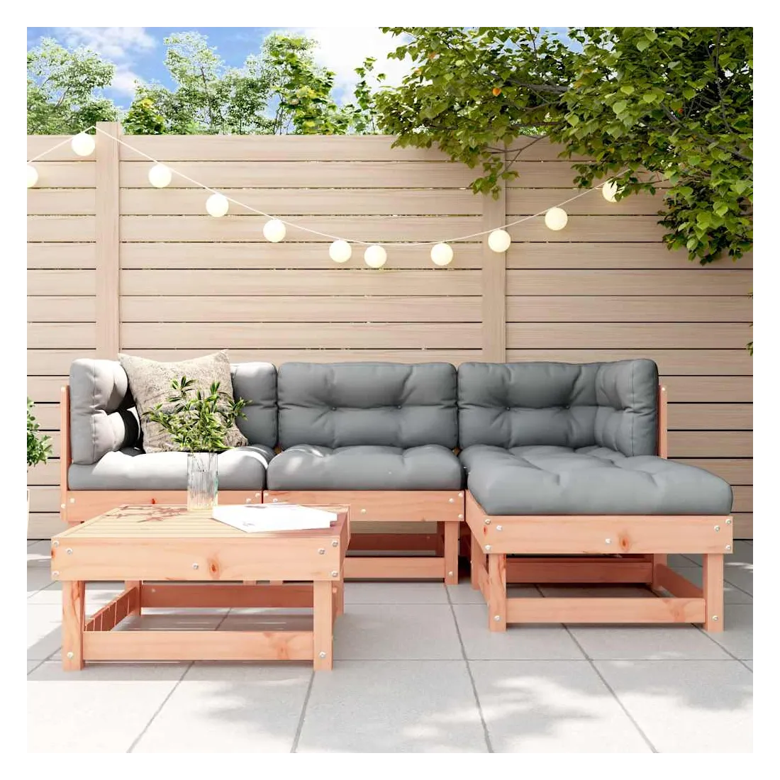 Ce salon de jardin en bois, qui se démarque par son design à lattes et ses coussins moelleux, sera un excellent supplément à votre jardin, patio ou terrasse pour profiter d'un moment agréable avec votre famille ou vos amis. Bois de douglas massif : le bois de douglas massif est un bois très durable qui fonctionne bien pour l'extérieur. Le bois de douglas est également suffisamment solide pour être travaillé avec un minimum de soin, même sous l'influence des intempéries.Cadre robuste et stable : le cadre en bois rend l'ensemble de salon robuste et stable pour une utilisation quotidienne à l'extérieur.Expérience d'assise confortable : le dossier et l'accoudoir ajoutent un confort d'assise supplémentaire à l'ensemble de meubles de jardin. De plus, les coussins bien rembourrés vous permettent de vous asseoir confortablement.Design modulaire : le canapé est flexible et facile à déplacer. Vous pouvez le combiner avec d'autres segments modulaires de la boutique en ligne pour créer vos propres configurations de salon de jardin ! Bon à savoir :Pour que vos meubles d'extérieur restent beaux, nous vous recommandons de les protéger avec une housse imperméable.