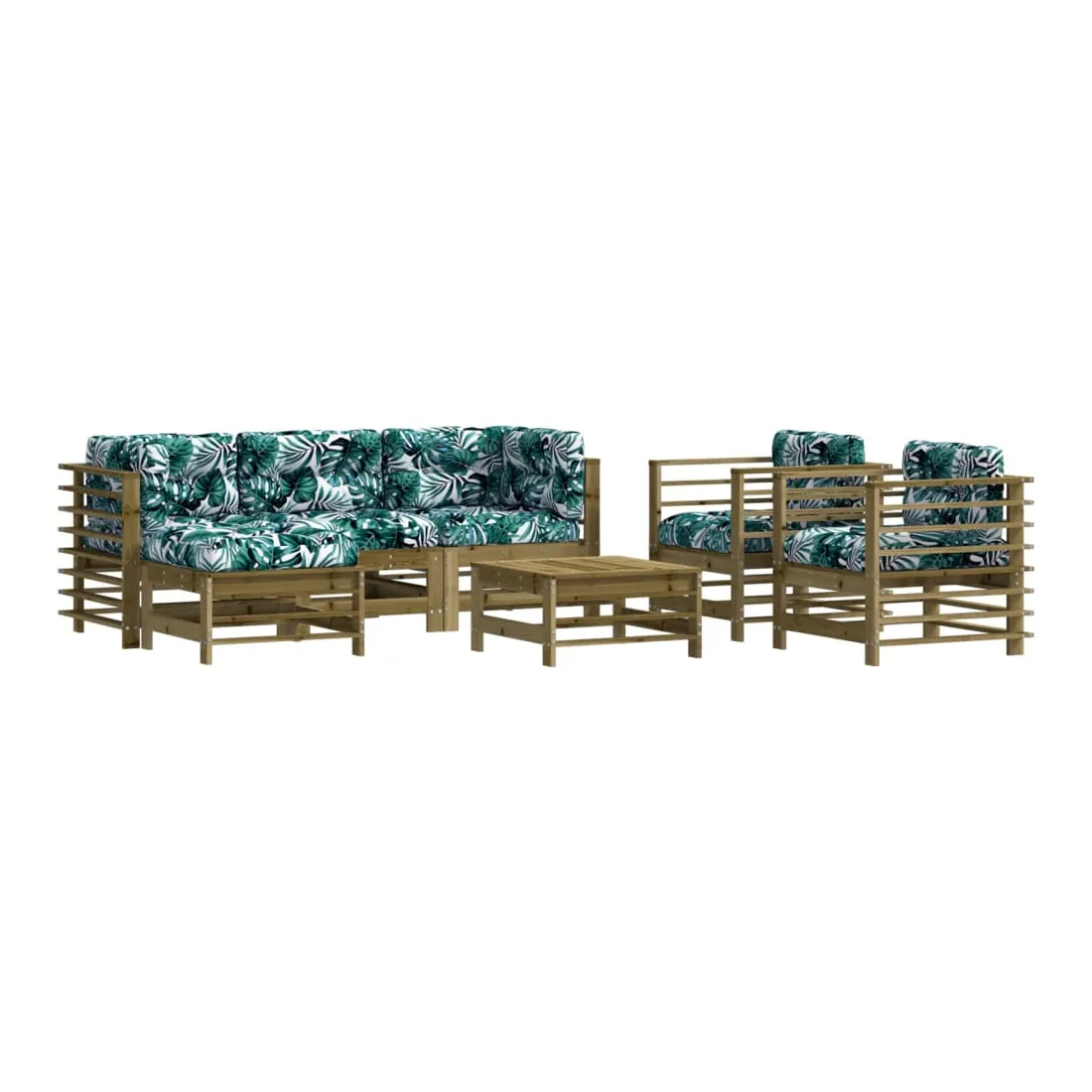 Ce salon de jardin en bois, qui se démarque par son design à lattes et ses coussins moelleux, sera un excellent supplément à votre jardin, patio ou terrasse pour profiter d'un moment agréable avec votre famille ou vos amis. Bois imprégné : le bois de pin massif est un matériau naturel magnifique. Le bois de pin a un grain droit et les nœuds lui confèrent un aspect rustique caractéristique. L'imprégnation est un processus de conservation réalisé à l'aide d'autoclaves. Le traitement sous pression augmente la résistance à la pourriture et aux intempéries.Expérience d'assise confortable : le dossier et l'accoudoir ajoutent un confort d'assise supplémentaire à l'ensemble de meubles de jardin. De plus, les coussins bien rembourrés vous permettent de vous asseoir confortablement.Design modulaire : le canapé est flexible et facile à déplacer. Vous pouvez le combiner avec d'autres segments modulaires de la boutique en ligne pour créer vos propres configurations de salon de jardin ! Bon à savoir :Pour que vos meubles d'extérieur restent beaux, nous vous recommandons de les protéger avec une housse imperméable.