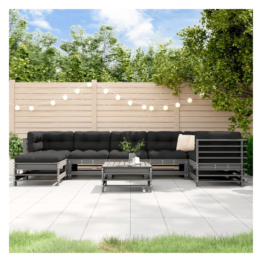 Ce salon de jardin en bois, qui se démarque par son design à lattes et ses coussins moelleux, sera un excellent supplément à votre jardin, patio ou terrasse pour profiter d'un moment agréable avec votre famille ou vos amis. Bois de pin massif : le bois de pin massif est un matériau naturel magnifique. Le bois de pin a un grain droit et les nœuds donnent au matériau son aspect caractéristique et rustique.Cadre robuste et stable : le cadre en bois rend l'ensemble de salon robuste et stable pour une utilisation quotidienne à l'extérieur.Expérience d'assise confortable : le dossier et l'accoudoir ajoutent un confort d'assise supplémentaire à l'ensemble de meubles de jardin. De plus, les coussins bien rembourrés vous permettent de vous asseoir confortablement.Design modulaire : le canapé est flexible et facile à déplacer. Vous pouvez le combiner avec d'autres segments modulaires de la boutique en ligne pour créer vos propres configurations de salon de jardin ! Bon à savoir :Pour que vos meubles d'extérieur restent beaux, nous vous recommandons de les protéger avec une housse imperméable.