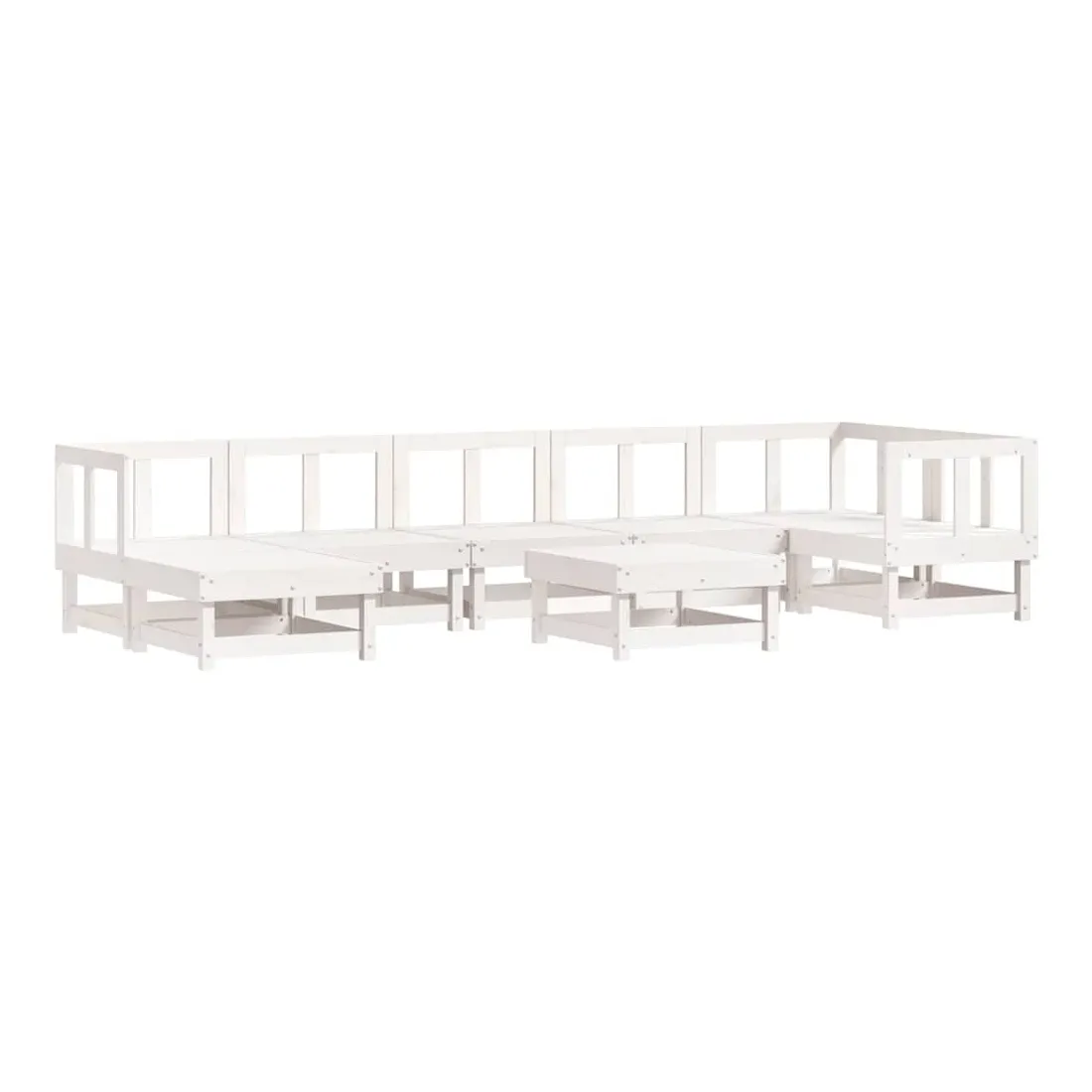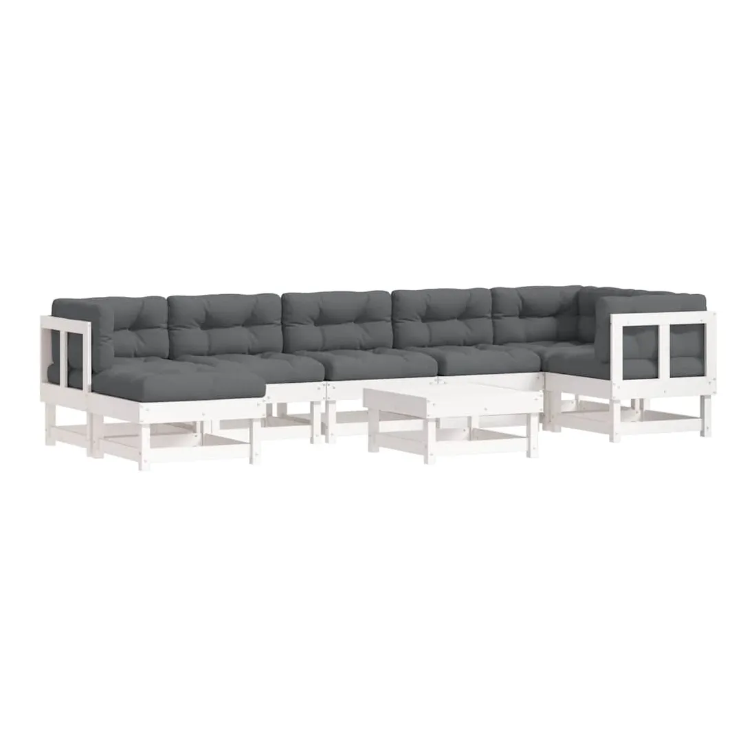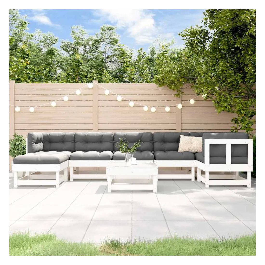 Salon de jardin 8 pcs avec coussins blanc bois massif