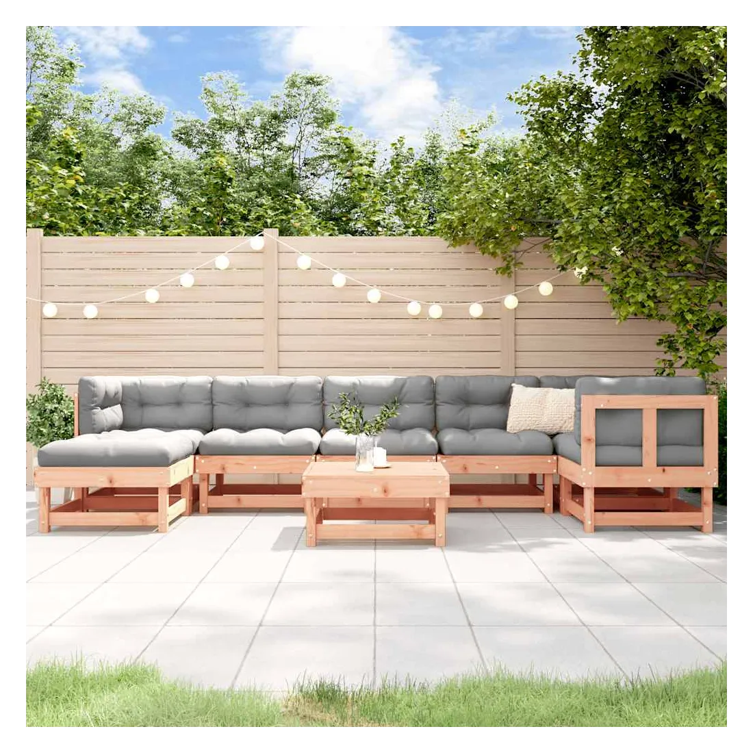 Ce salon de jardin en bois, qui se démarque par son design à lattes et ses coussins moelleux, sera un excellent supplément à votre jardin, patio ou terrasse pour profiter d'un moment agréable avec votre famille ou vos amis. Bois de douglas massif : le bois de douglas massif est un bois très durable qui fonctionne bien pour l'extérieur. Le bois de douglas est également suffisamment solide pour être travaillé avec un minimum de soin, même sous l'influence des intempéries.Cadre robuste et stable : le cadre en bois rend l'ensemble de salon robuste et stable pour une utilisation quotidienne à l'extérieur.Expérience d'assise confortable : le dossier et l'accoudoir ajoutent un confort d'assise supplémentaire à l'ensemble de meubles de jardin. De plus, les coussins bien rembourrés vous permettent de vous asseoir confortablement.Design modulaire : le canapé est flexible et facile à déplacer. Vous pouvez le combiner avec d'autres segments modulaires de la boutique en ligne pour créer vos propres configurations de salon de jardin ! Bon à savoir :Pour que vos meubles d'extérieur restent beaux, nous vous recommandons de les protéger avec une housse imperméable.