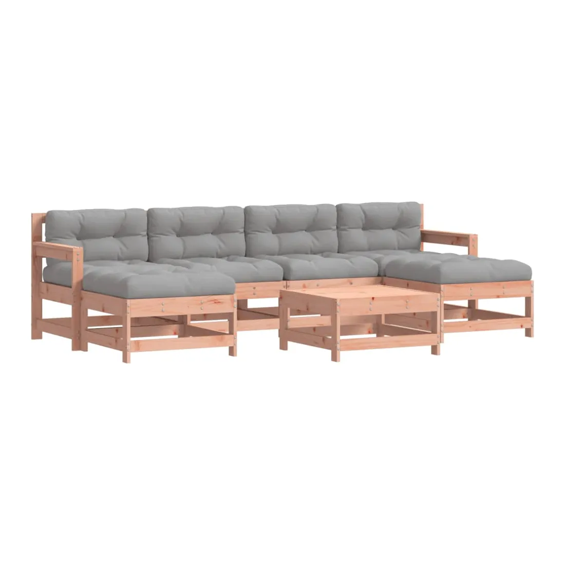 Ce salon de jardin en bois, qui se démarque par son design à lattes et ses coussins moelleux, sera un excellent supplément à votre jardin, patio ou terrasse pour profiter d'un moment agréable avec votre famille ou vos amis. Bois de douglas massif : le bois de douglas massif est un bois très durable qui fonctionne bien pour l'extérieur. Le bois de Douglas est également suffisamment solide pour être travaillé avec un minimum de soin, même sous l'influence des intempéries.Cadre robuste et stable : le cadre en bois rend l'ensemble de salon robuste et stable pour une utilisation quotidienne à l'extérieur.Expérience d'assise confortable : le dossier et l'accoudoir ajoutent un confort d'assise supplémentaire à l'ensemble de meubles de jardin. De plus, les coussins bien rembourrés vous permettent de vous asseoir confortablement.Design modulaire : le canapé est flexible et facile à déplacer. Vous pouvez le combiner avec d'autres segments modulaires de la boutique en ligne pour créer vos propres configurations de salon de jardin ! Bon à savoir :Pour que vos meubles d'extérieur restent beaux, nous vous recommandons de les protéger avec une housse imperméable.