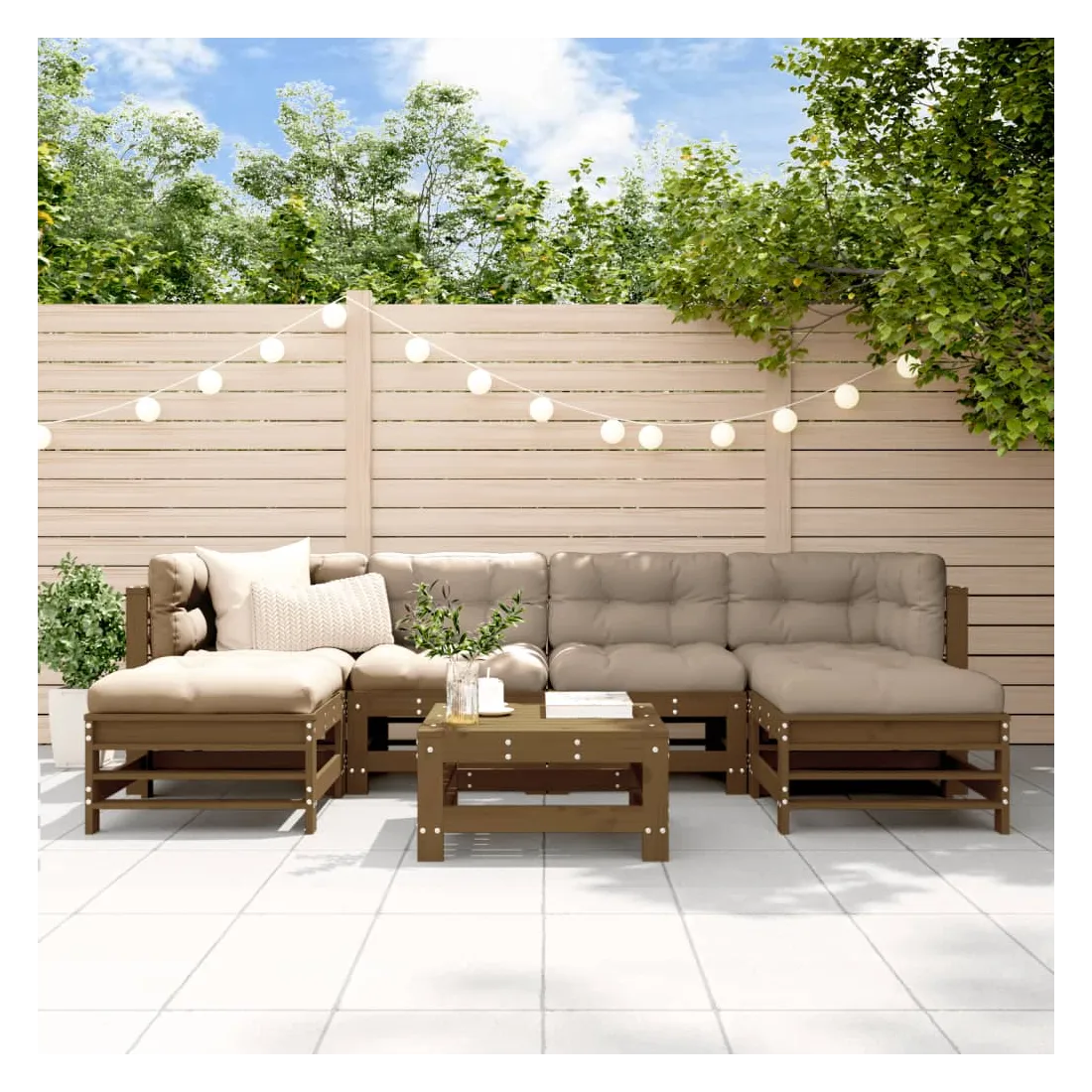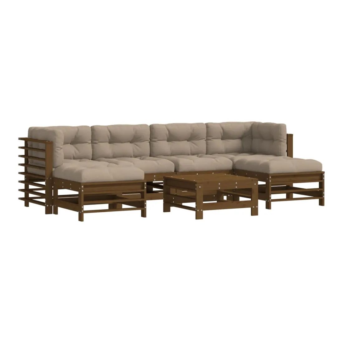 Salon de jardin 7 pcs avec coussins marron miel bois massif