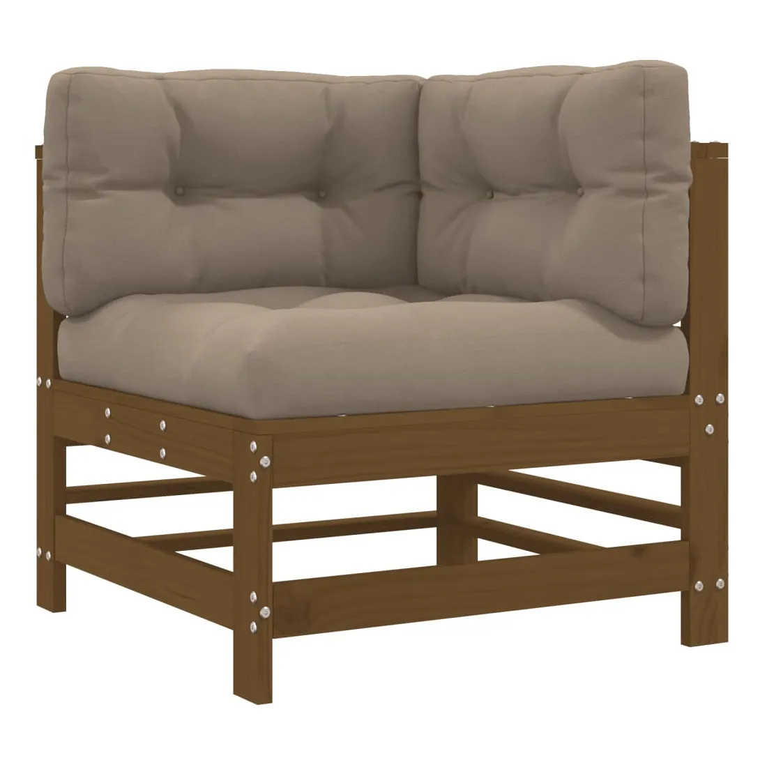 vidaXLCe salon de jardin en bois, qui se démarque par son design à lattes et ses coussins moelleux, sera un excellent supplément à votre jardin, patio ou terrasse pour profiter d'un moment agréable avec votre famille ou vos amis. Bois de pin massif : le bois de pin massif est un matériau naturel magnifique. Le bois de pin a un grain droit et les nœuds donnent au matériau son aspect caractéristique et rustique.Cadre robuste et stable : le cadre en bois rend l'ensemble de salon robuste et stable pour une utilisation quotidienne à l'extérieur.Expérience d'assise confortable : le dossier et l'accoudoir ajoutent un confort d'assise supplémentaire à l'ensemble de meubles de jardin. De plus, les coussins bien rembourrés vous permettent de vous asseoir confortablement.Design modulaire : le canapé est flexible et facile à déplacer. Vous pouvez le combiner avec d'autres segments modulaires de la boutique en ligne pour créer vos propres configurations de salon de jardin ! Bon à savoir :Pour que vos meubles d'extérieur restent beaux, nous vous recommandons de les protéger avec une housse imperméable.