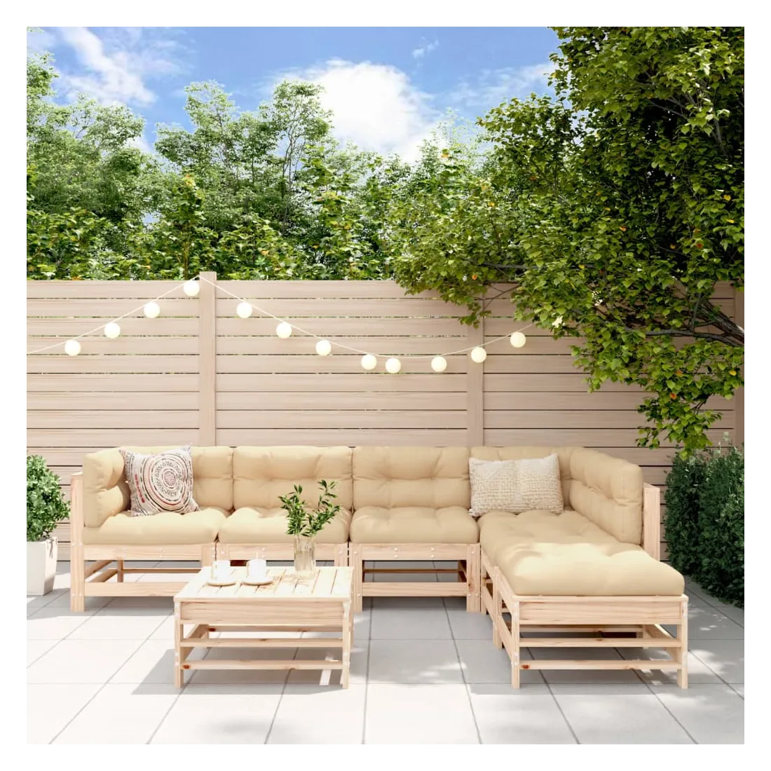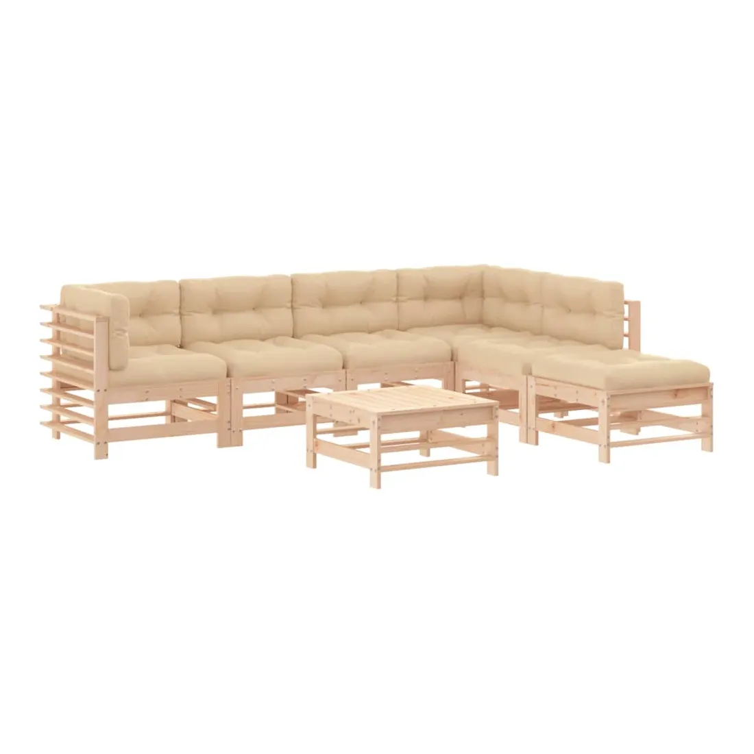 Ce salon de jardin en bois, qui se démarque par son design à lattes et ses coussins moelleux, sera un excellent supplément à votre jardin, patio ou terrasse pour profiter d'un moment agréable avec votre famille ou vos amis. Bois de pin massif : le bois de pin massif est un matériau naturel magnifique. Le bois de pin a un grain droit et les nœuds donnent au matériau son aspect caractéristique et rustique.Cadre robuste et stable : le cadre en bois rend l'ensemble de salon robuste et stable pour une utilisation quotidienne à l'extérieur.Expérience d'assise confortable : le dossier et l'accoudoir ajoutent un confort d'assise supplémentaire à l'ensemble de meubles de jardin. De plus, les coussins bien rembourrés vous permettent de vous asseoir confortablement.Design modulaire : le canapé est flexible et facile à déplacer. Vous pouvez le combiner avec d'autres segments modulaires de la boutique en ligne pour créer vos propres configurations de salon de jardin ! Bon à savoir :Pour que vos meubles d'extérieur restent beaux, nous vous recommandons de les protéger avec une housse imperméable.