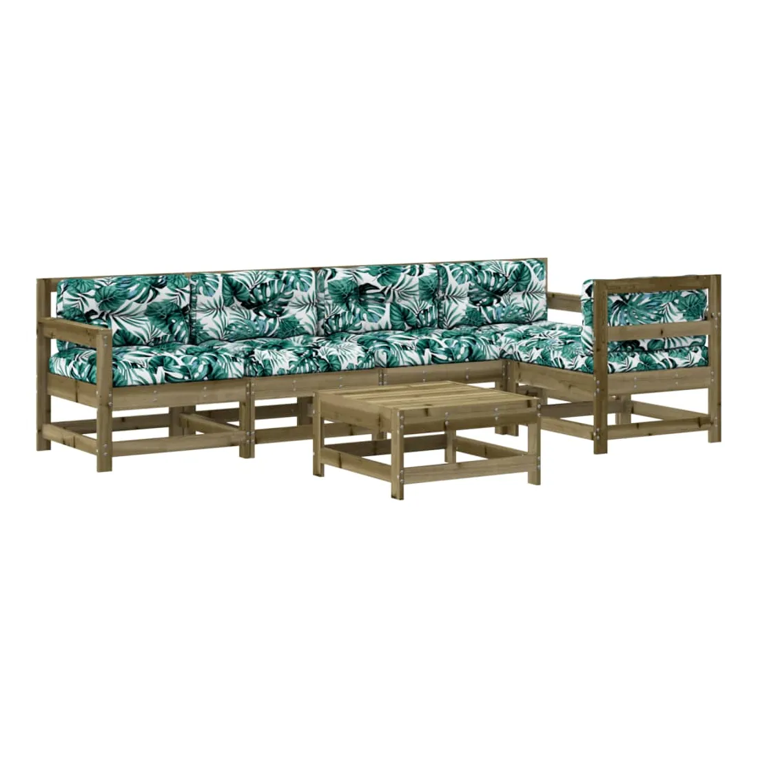 Salon de jardin 6 pcs avec coussins bois de pin imprégné