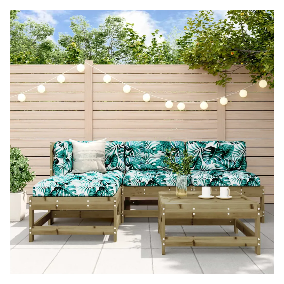 Ce salon de jardin en bois, qui se démarque par son design à lattes et ses coussins moelleux, sera un excellent supplément à votre jardin, patio ou terrasse pour profiter d'un moment agréable avec votre famille ou vos amis. Bois imprégné : le bois de pin massif est un matériau naturel magnifique. Le bois de pin a un grain droit et les nœuds lui confèrent un aspect rustique caractéristique. L'imprégnation est un processus de conservation réalisé à l'aide d'autoclaves. Le traitement sous pression augmente la résistance à la pourriture et aux intempéries.Expérience d'assise confortable : le dossier et l'accoudoir ajoutent un confort d'assise supplémentaire à l'ensemble de meubles de jardin. De plus, les coussins bien rembourrés vous permettent de vous asseoir confortablement.Design modulaire : le canapé est flexible et facile à déplacer. Vous pouvez le combiner avec d'autres segments modulaires de la boutique en ligne pour créer vos propres configurations de salon de jardin ! Bon à savoir :Pour que vos meubles d'extérieur restent beaux, nous vous recommandons de les protéger avec une housse imperméable.