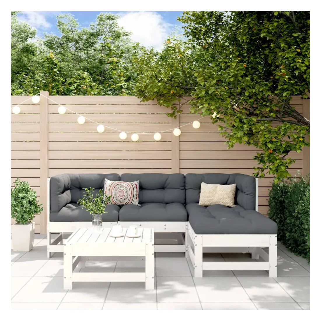 Ce salon de jardin en bois, qui se démarque par son design à lattes, sera un excellent supplément à votre jardin, patio ou terrasse pour profiter d'un moment agréable avec votre famille ou vos amis. Bois de pin massif : le bois de pin massif est un matériau naturel magnifique. Le bois de pin a un grain droit et les nœuds donnent au matériau son aspect caractéristique et rustique.Cadre robuste et stable : les cadres en bois rendent l'ensemble de salon robuste et stable pour une utilisation quotidienne à l'extérieur.Design modulaire : le canapé est flexible et facile à déplacer. Vous pouvez le combiner avec d'autres segments modulaires de la boutique en ligne pour créer vos propres configurations de salon de jardin ! Bon à savoir :Pour que vos meubles d'extérieur restent beaux, nous vous recommandons de les protéger avec une housse imperméable.Les coussins ne sont pas inclus dans la livraison.