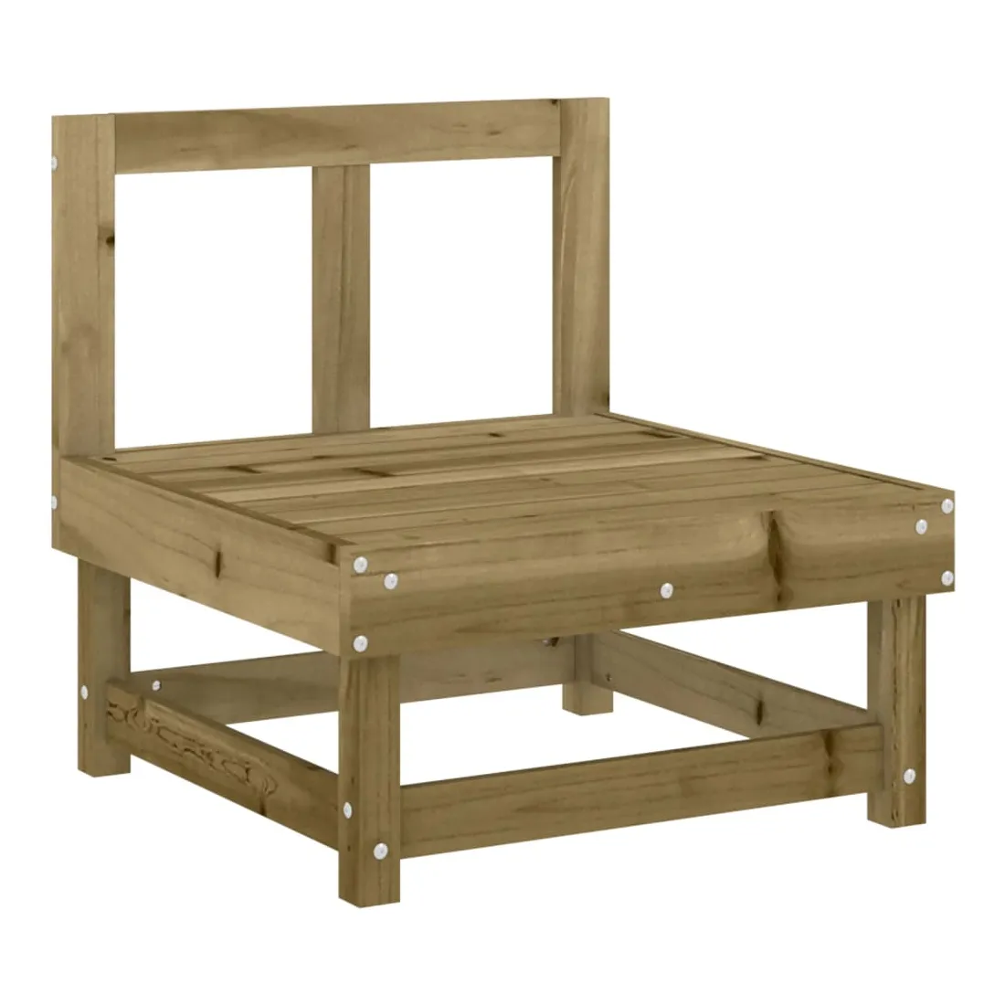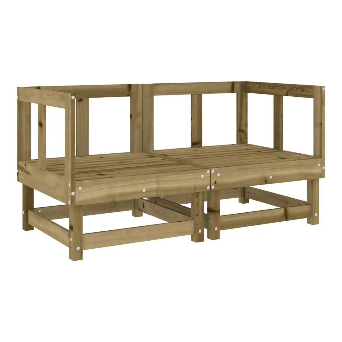 vidaXLCe salon de jardin en bois, qui se démarque par son design à lattes, sera un excellent supplément à votre jardin, patio ou terrasse pour profiter d'un moment agréable avec votre famille ou vos amis. Bois imprégné : le bois de pin massif est un matériau naturel magnifique. Le bois de pin a un grain droit et les nœuds lui confèrent un aspect rustique caractéristique. L'imprégnation est un processus de conservation réalisé à l'aide d'autoclaves. Le traitement sous pression augmente la résistance à la pourriture et aux intempéries.Expérience d'assise confortable : le dossier ajoute un confort d'assise supplémentaire au canapé d'extérieur.Design modulaire : le canapé est flexible et facile à déplacer. Vous pouvez le combiner avec d'autres segments modulaires de la boutique en ligne pour créer vos propres configurations de salon de jardin ! Bon à savoir :Pour que vos meubles d'extérieur restent beaux, nous vous recommandons de les protéger avec une housse imperméable.Les coussins ne sont pas inclus dans la livraison.