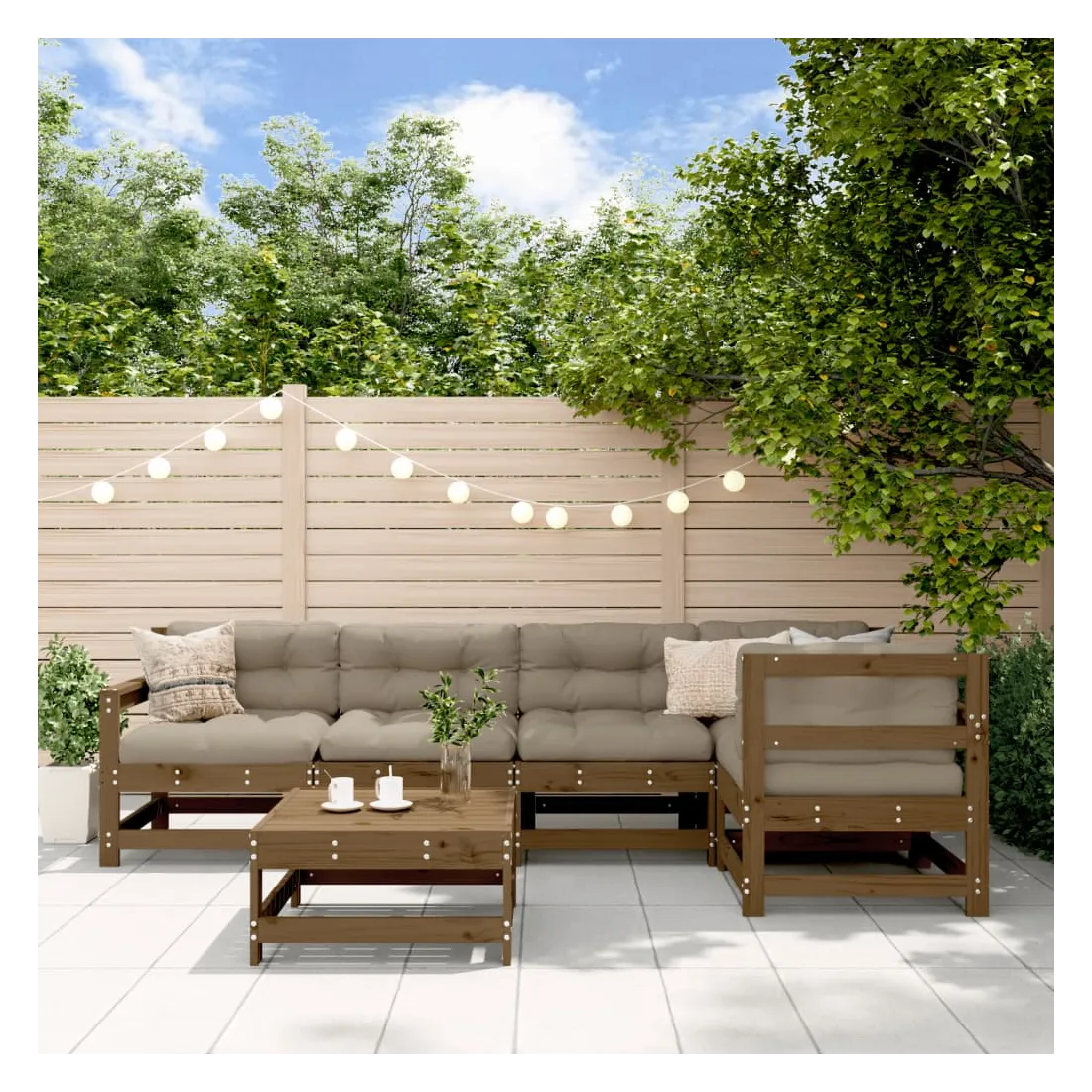 Salon de jardin 6 pcs Marron miel Bois de pin massif