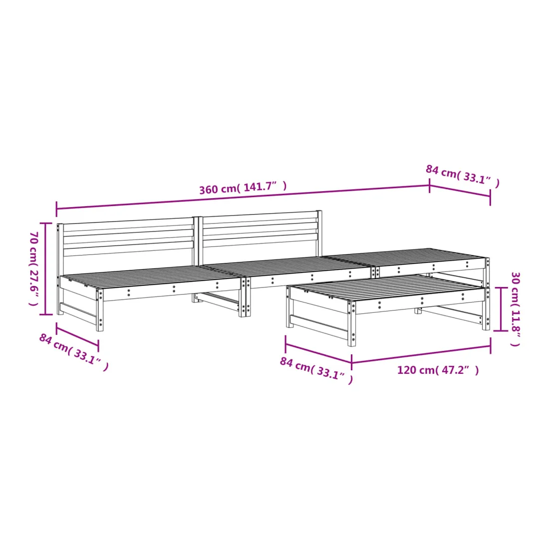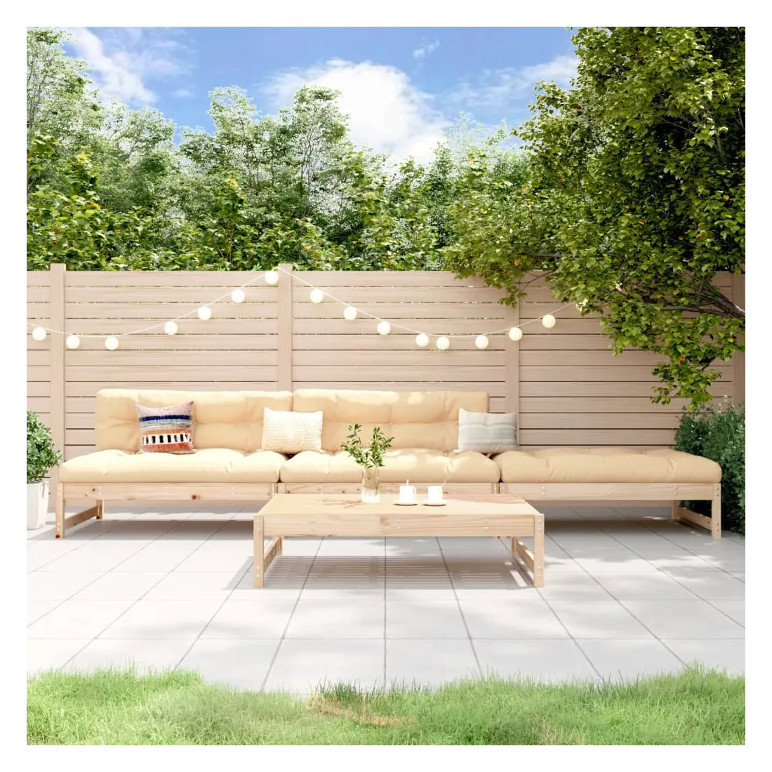 Ce salon de jardin en bois, qui se démarque par son design à lattes, sera un excellent supplément à votre jardin, patio ou terrasse pour profiter d'un moment agréable avec votre famille ou vos amis. Bois de pin massif : le bois de pin massif est un matériau naturel magnifique. Le bois de pin a un grain droit et les nœuds donnent au matériau son aspect caractéristique et rustique.Expérience d'assise confortable : le dossier ajoute un confort d'assise supplémentaire à l'ensemble de salon.Design modulaire : l’ensemble de salon palette est flexible et facile à déplacer. Vous pouvez le combiner avec d'autres segments modulaires de la boutique en ligne pour créer vos propres configurations de salon de jardin ! Bon à savoir :Les coussins ne sont pas inclus.Pour que vos meubles d'extérieur restent beaux, nous vous recommandons de les protéger avec une housse imperméable.