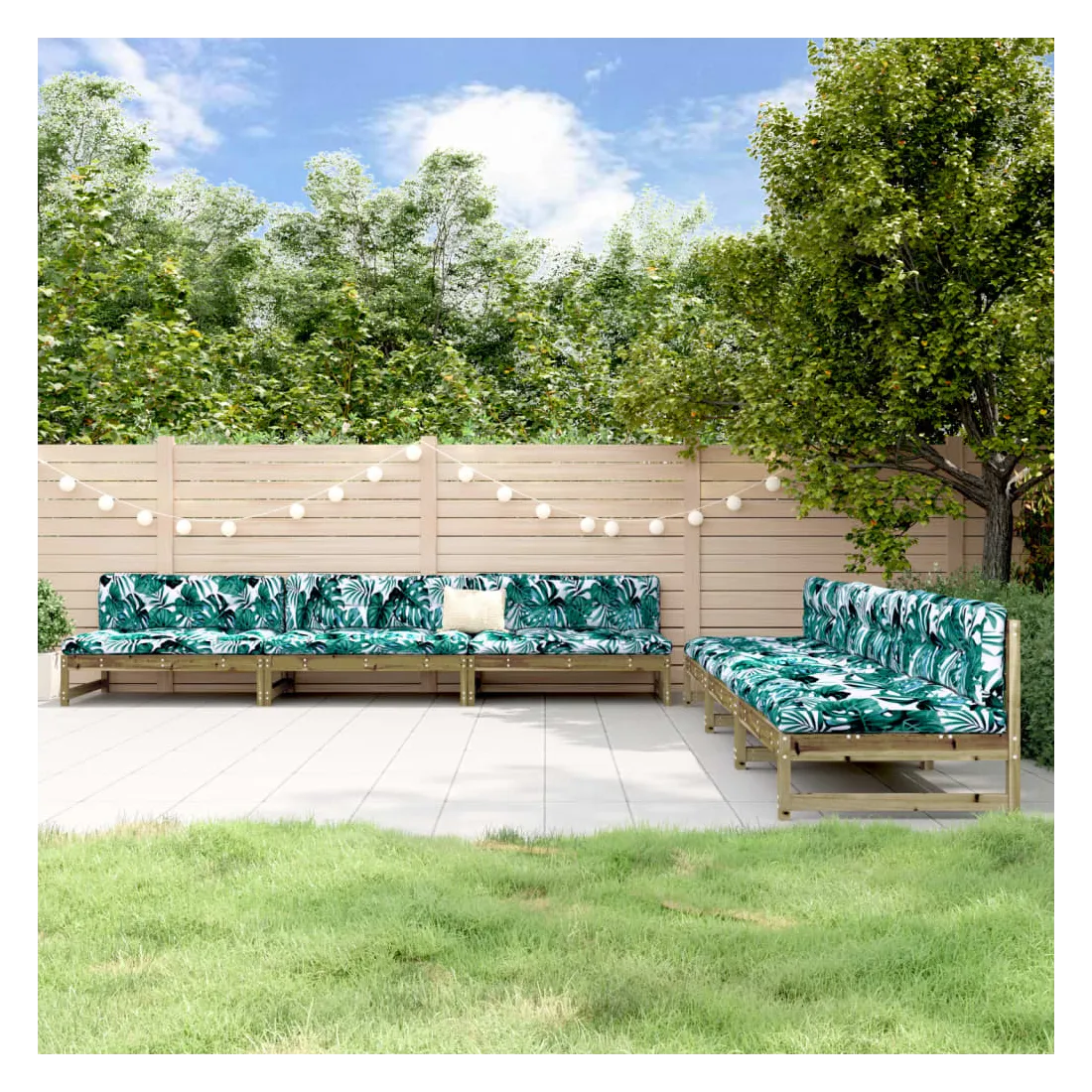vidaXLCe salon de jardin en bois, qui se démarque par son design à lattes, sera un excellent supplément à votre jardin, patio ou terrasse pour profiter d'un moment agréable avec votre famille ou vos amis. Bois imprégné : le bois de pin massif est un matériau naturel magnifique. Le bois de pin a un grain droit et les nœuds lui confèrent un aspect rustique caractéristique. L'imprégnation est un processus de conservation réalisé à l'aide d'autoclaves. Le traitement sous pression augmente la résistance à la pourriture et aux intempéries.Expérience d'assise confortable : le dossier ajoute un confort d'assise supplémentaire au canapé d'extérieur.Design modulaire : le canapé est flexible et facile à déplacer. Vous pouvez le combiner avec d'autres segments modulaires de la boutique en ligne pour créer vos propres configurations de salon de jardin ! Bon à savoir :Les coussins ne sont pas inclus dans la livraison.Pour que vos meubles d'extérieur restent beaux, nous vous recommandons de les protéger avec une housse imperméable.