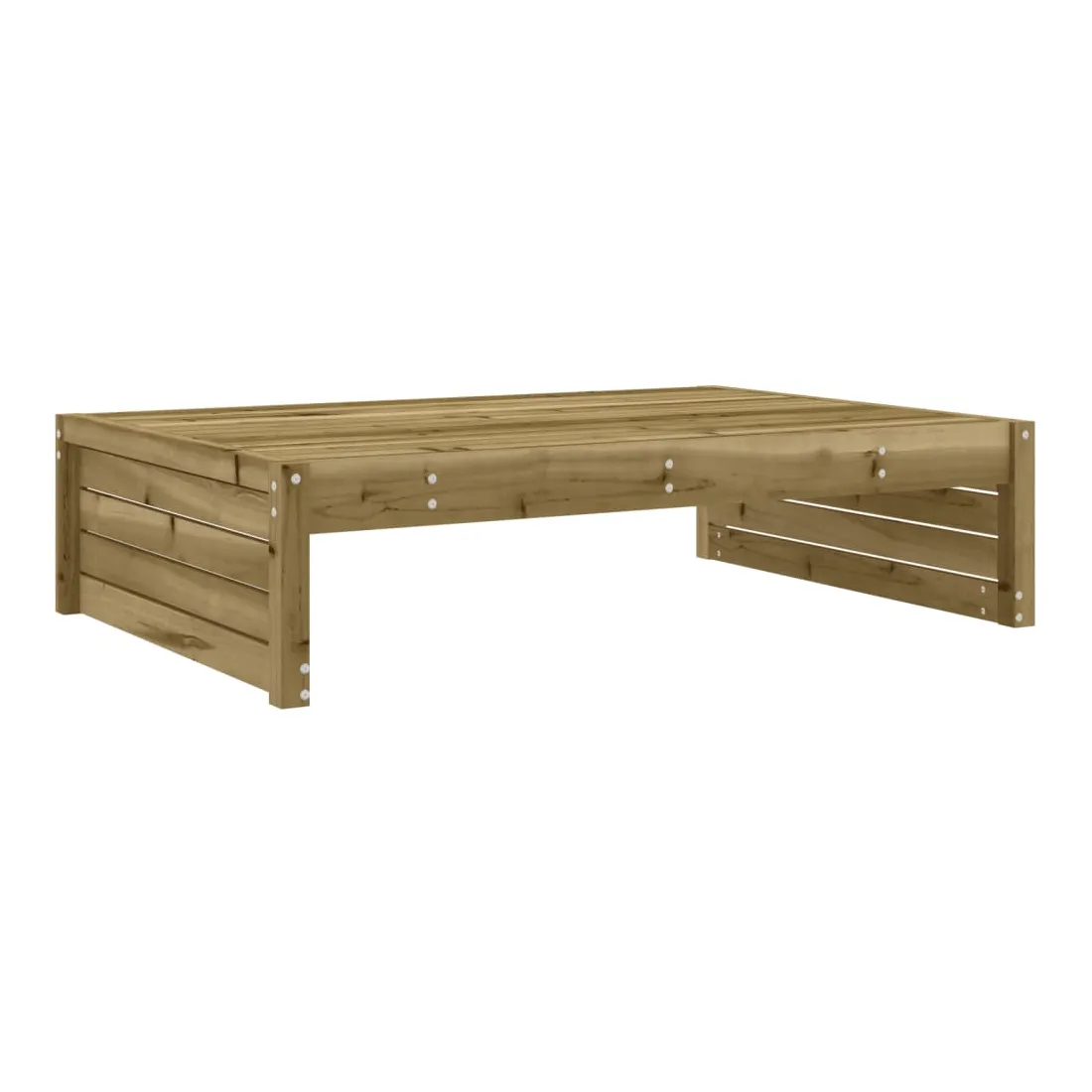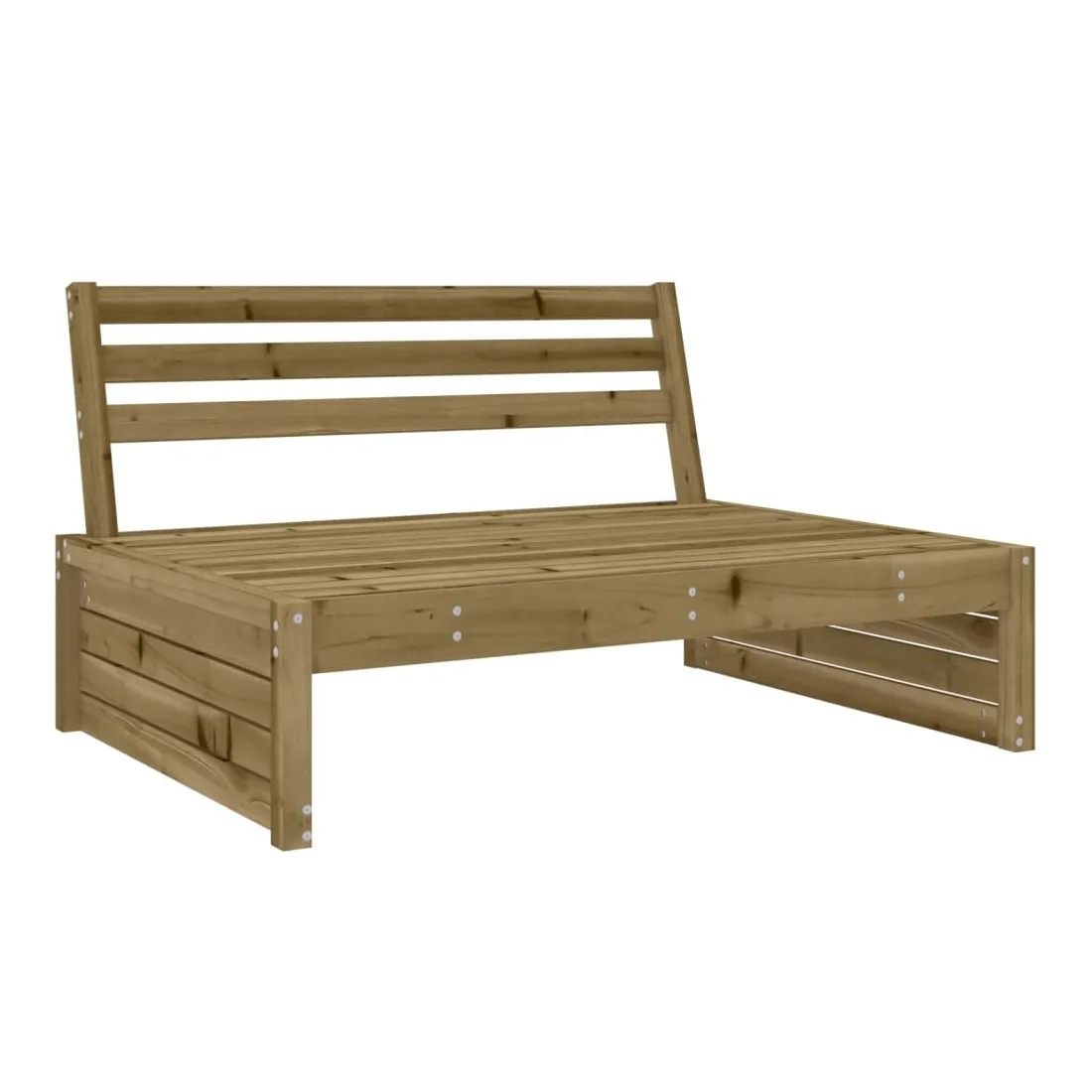 vidaXLCe salon de jardin en bois, qui se démarque par son design à lattes, sera un excellent supplément à votre jardin, patio ou terrasse pour profiter d'un moment agréable avec votre famille ou vos amis. Bois imprégné : le bois de pin massif est un matériau naturel magnifique. Le bois de pin a un grain droit et les nœuds lui confèrent un aspect rustique caractéristique. L'imprégnation est un processus de conservation réalisé à l'aide d'autoclaves. Le traitement sous pression augmente la résistance à la pourriture et aux intempéries.Expérience d'assise confortable : le dossier ajoute un confort d'assise supplémentaire au canapé d'extérieur.Design modulaire : le canapé est flexible et facile à déplacer. Vous pouvez le combiner avec d'autres segments modulaires de la boutique en ligne pour créer vos propres configurations de salon de jardin ! Bon à savoir :Les coussins ne sont pas inclus dans la livraison.Pour que vos meubles d'extérieur restent beaux, nous vous recommandons de les protéger avec une housse imperméable.