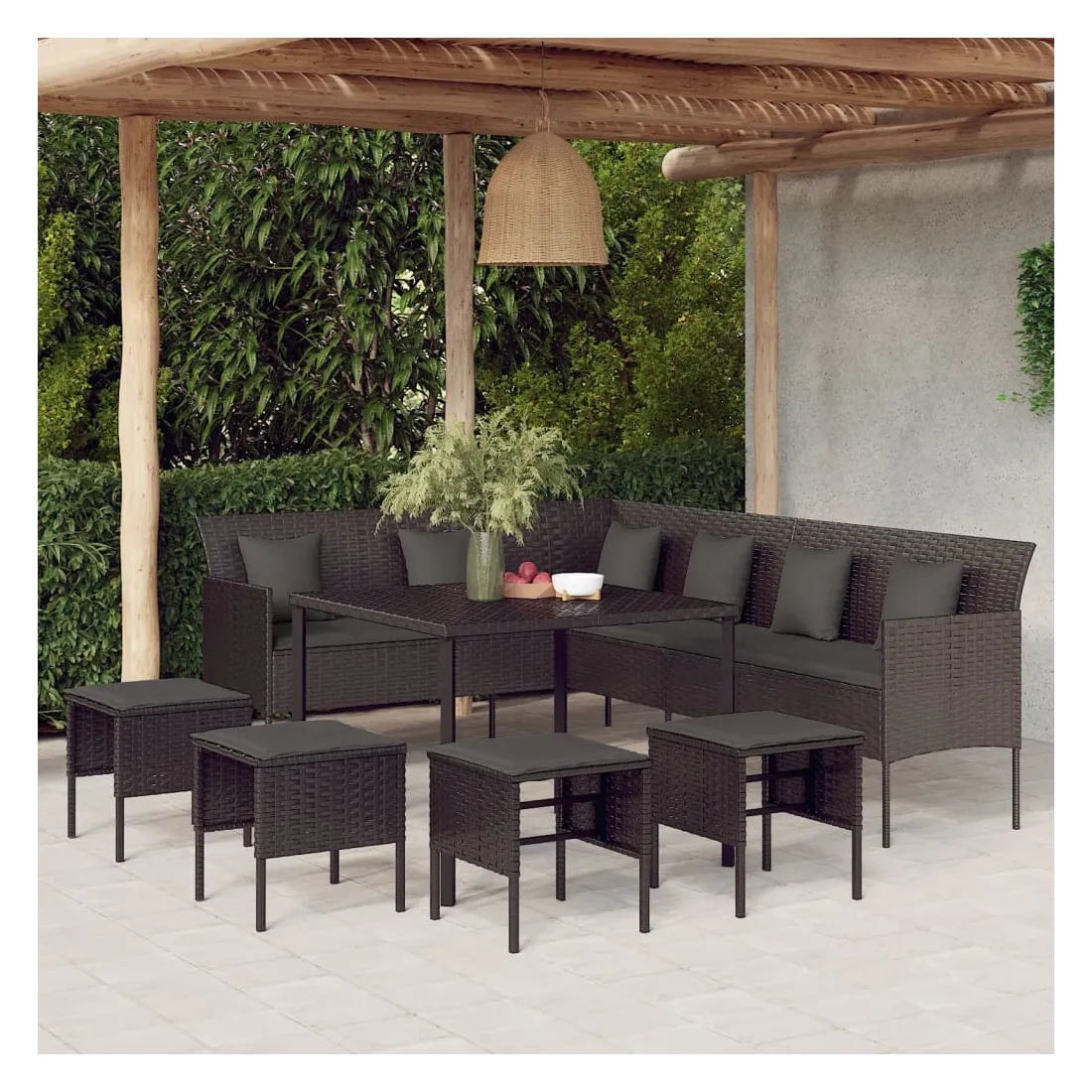 Cet ensemble de salle à manger de jardin tendance, au design élégant et contemporain, est un excellent choix pour vous détendre dans votre jardin. Matériau durable : la résine tressée, également connue sous le nom de rotin poly, résiste aux intempéries et est facile à nettoyer. Elle reste belle à l'extérieur pendant une longue période. Elle est plus économique que d'autres matériaux, tout en offrant une excellente qualité, une commodité et un aspect esthétique.Cadre stable : l'acier est un matériau exceptionnellement dur et résistant. Il offre robustesse et stabilité à l'ensemble de salle à manger. Le revêtement en poudre sur l'acier crée une couche protectrice contre l'usure.Expérience de siège confortable : avec les coussins de siège et de dossier bien rembourrés, l'ensemble de salle à manger d'extérieur est très confortable. Bon à savoir :Pour faciliter au maximum le montage, chaque produit est livré avec des instructions. Remarque :Pour que vos meubles d'extérieur restent beaux, nous vous recommandons de les protéger avec une housse imperméable.