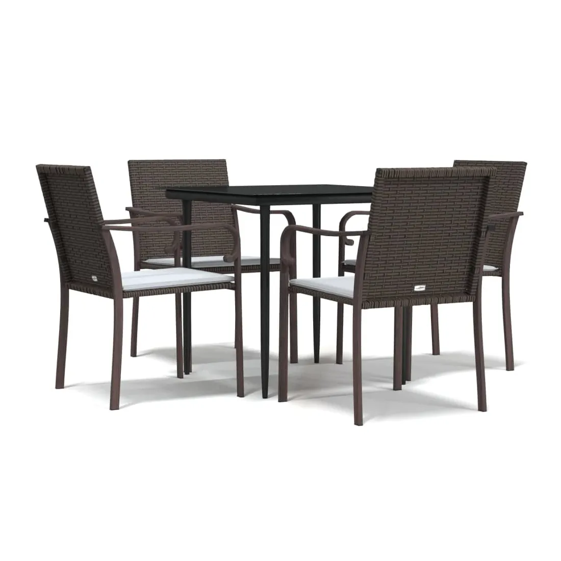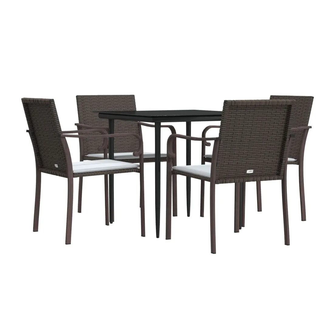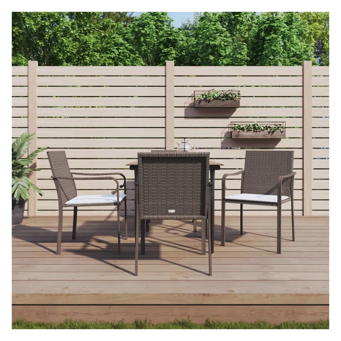 Cet ensemble à manger de jardin, combinant à la fois style et fonctionnalité, est sûrement destiné à être la pièce maîtresse de votre jardin, terrasse et de tout autre espace de vie. Matériau résistant aux intempéries : la résine tressée, également connue sous le nom de rotin poly, résiste aux intempéries et est facile à nettoyer. Elle reste belle à l'extérieur pendant une longue période. Elle offre une excellente qualité, commodité et un aspect esthétique.Cadre robuste et stable : les cadres en acier rendent l'ensemble à manger robuste et stable pour une utilisation quotidienne à l'extérieur.Dessus de table pratique : le plateau lisse de la table à manger est en verre trempé facile à nettoyer avec un chiffon humide. De plus, il offre un excellent support pour contenir vos repas, boissons et autres objets décoratifs.Assise confortable : la chaise de salle à manger est conçue avec des accoudoirs pour vous offrir une expérience d'assise confortable. Le coussin de siège épais et rembourré offre un confort ultime pendant votre temps d'assise. Remarque :Pour que vos meubles d'extérieur restent beaux, nous vous recommandons de les protéger avec une housse imperméable.