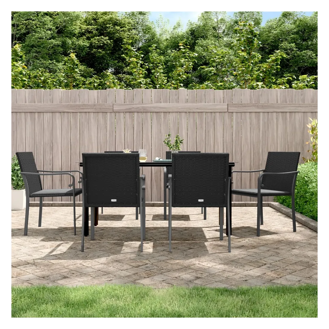 Cet ensemble à manger de jardin, combinant à la fois style et fonctionnalité, est sûrement destiné à être la pièce maîtresse de votre jardin, terrasse et de tout autre espace de vie. Matériau résistant aux intempéries : la résine tressée, également connue sous le nom de rotin poly, résiste aux intempéries et est facile à nettoyer. Elle reste belle à l'extérieur pendant une longue période. Elle offre une excellente qualité, commodité et un aspect esthétique.Cadre robuste et stable : les cadres en acier rendent l'ensemble à manger robuste et stable pour une utilisation quotidienne à l'extérieur.Dessus de table pratique : le plateau lisse de la table à manger est en verre trempé facile à nettoyer avec un chiffon humide. De plus, il offre un excellent support pour contenir vos repas, boissons et autres objets décoratifs.Assise confortable : la chaise de salle à manger est conçue avec des accoudoirs pour vous offrir une expérience d'assise confortable. Le coussin de siège épais et rembourré offre un confort ultime pendant votre temps d'assise. Remarque :Pour que vos meubles d'extérieur restent beaux, nous vous recommandons de les protéger avec une housse imperméable.