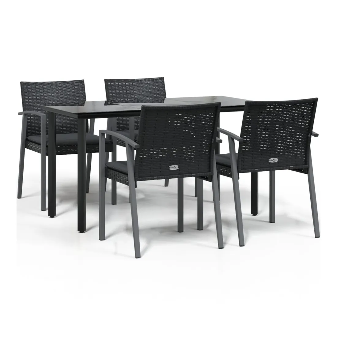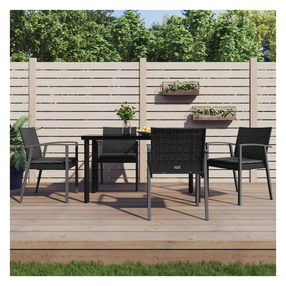 Cet ensemble à manger de jardin, combinant à la fois style et fonctionnalité, est sûrement destiné à être la pièce maîtresse de votre jardin, terrasse et de tout autre espace de vie. Matériau résistant aux intempéries : la résine tressée, également connue sous le nom de rotin poly, résiste aux intempéries et est facile à nettoyer. Elle reste belle à l'extérieur pendant une longue période. Elle offre une excellente qualité, commodité et un aspect esthétique.Cadre robuste et stable : les cadres en acier rendent l'ensemble à manger robuste et stable pour une utilisation quotidienne à l'extérieur.Dessus de table pratique : le plateau lisse de la table à manger est en verre trempé facile à nettoyer avec un chiffon humide. De plus, il offre un excellent support pour contenir vos repas, boissons et autres objets décoratifs.Assise confortable : la chaise de salle à manger est conçue avec des accoudoirs pour vous offrir une expérience d'assise confortable. Le coussin de siège épais et rembourré offre un confort ultime pendant votre temps d'assise. Remarque :Pour que vos meubles d'extérieur restent beaux, nous vous recommandons de les protéger avec une housse imperméable.