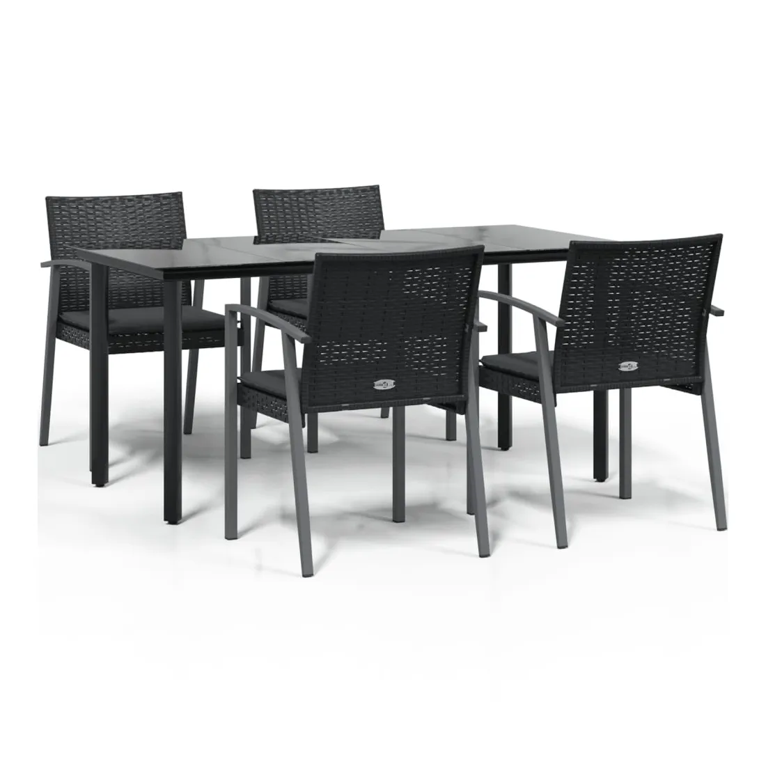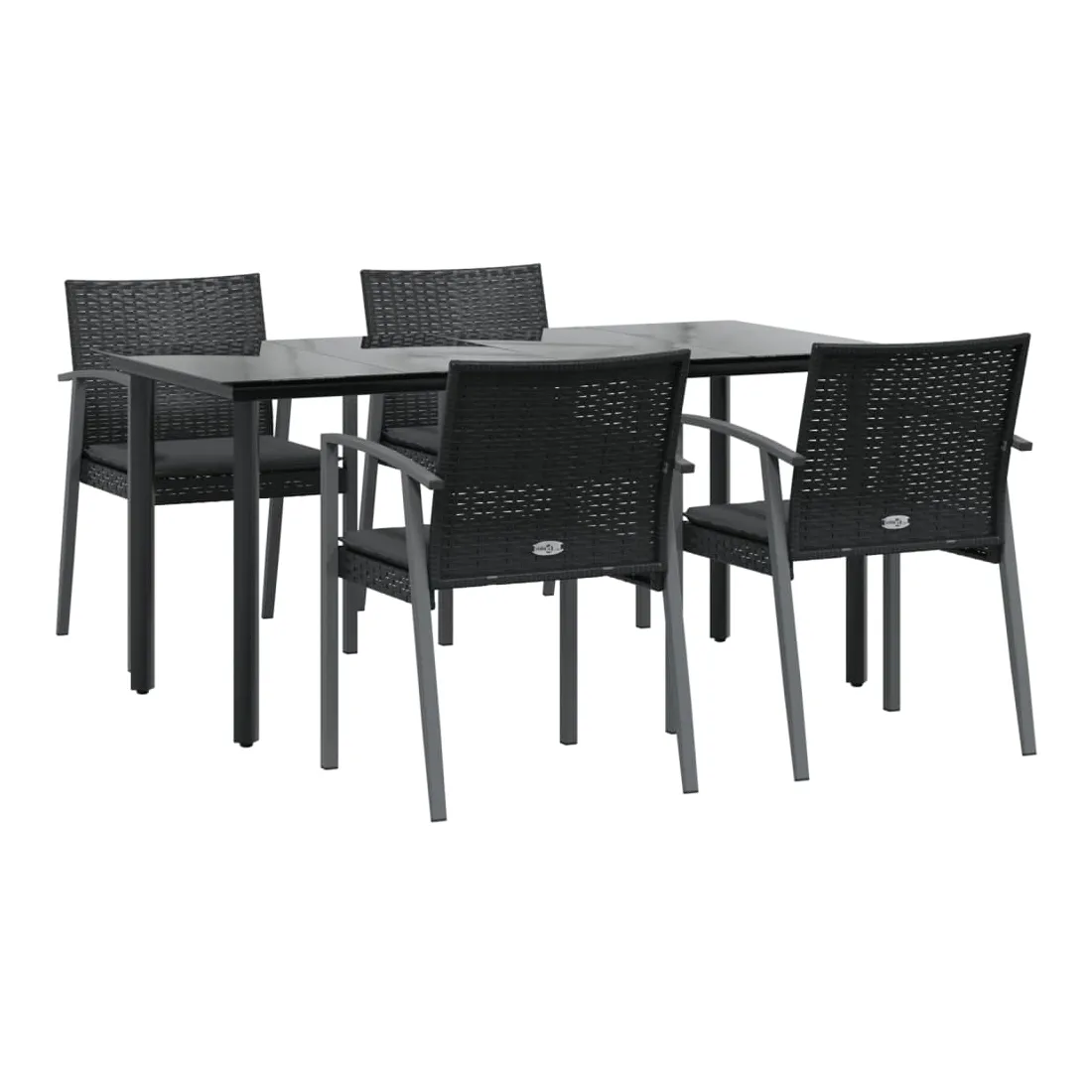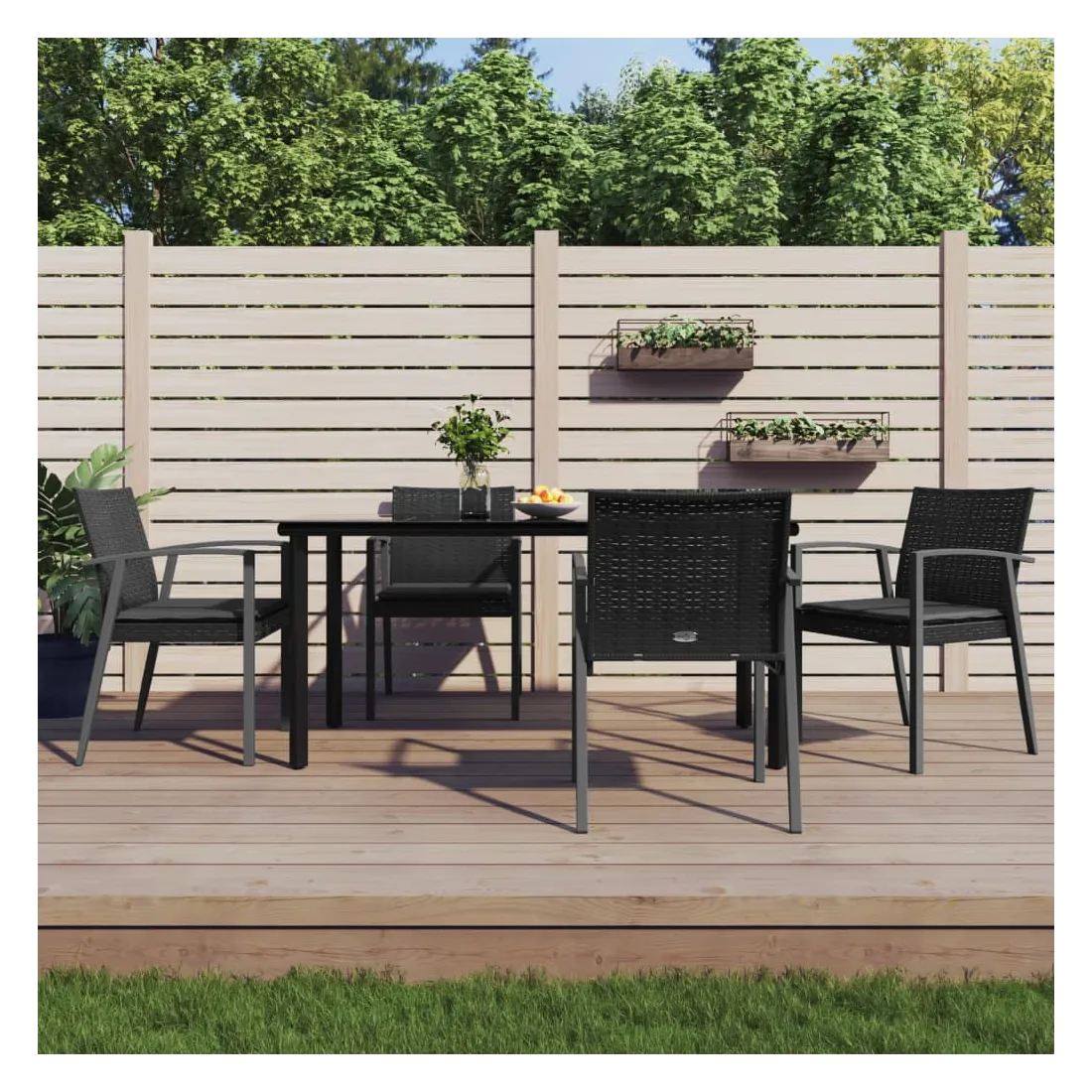 Cet ensemble à manger de jardin, combinant à la fois style et fonctionnalité, est sûrement destiné à être la pièce maîtresse de votre jardin, terrasse et de tout autre espace de vie. Matériau résistant aux intempéries : la résine tressée, également connue sous le nom de rotin poly, résiste aux intempéries et est facile à nettoyer. Elle reste belle à l'extérieur pendant une longue période. Elle offre une excellente qualité, commodité et un aspect esthétique.Cadre robuste et stable : les cadres en acier rendent l'ensemble à manger robuste et stable pour une utilisation quotidienne à l'extérieur.Dessus de table pratique : le plateau lisse de la table à manger est en verre trempé facile à nettoyer avec un chiffon humide. De plus, il offre un excellent support pour contenir vos repas, boissons et autres objets décoratifs.Assise confortable : la chaise de salle à manger est conçue avec des accoudoirs pour vous offrir une expérience d'assise confortable. Le coussin de siège épais et rembourré offre un confort ultime pendant votre temps d'assise. Remarque :Pour que vos meubles d'extérieur restent beaux, nous vous recommandons de les protéger avec une housse imperméable.