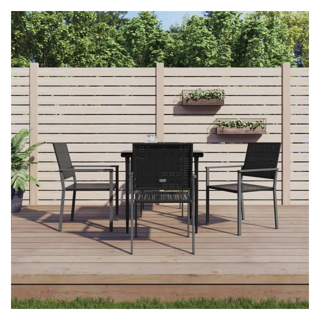 vidaXLCet ensemble à manger de jardin, combinant à la fois style et fonctionnalité, est sûrement destiné à être la pièce maîtresse de votre jardin, terrasse et de tout autre espace de vie. Matériau résistant aux intempéries : la résine tressée, également connue sous le nom de rotin poly, résiste aux intempéries et est facile à nettoyer. Elle reste belle à l'extérieur pendant une longue période. Elle offre une excellente qualité, commodité et un aspect esthétique.Cadre robuste et stable : les cadres en acier rendent l'ensemble à manger robuste et stable pour une utilisation quotidienne à l'extérieur.Dessus de table pratique : le plateau lisse de la table à manger est en verre trempé facile à nettoyer avec un chiffon humide. De plus, il offre un excellent support pour contenir vos repas, boissons et autres objets décoratifs.Assise confortable : la chaise à manger est conçue avec des accoudoirs pour vous offrir une expérience d'assise confortable. Remarque :Pour que vos meubles d'extérieur restent beaux, nous vous recommandons de les protéger avec une housse imperméable.