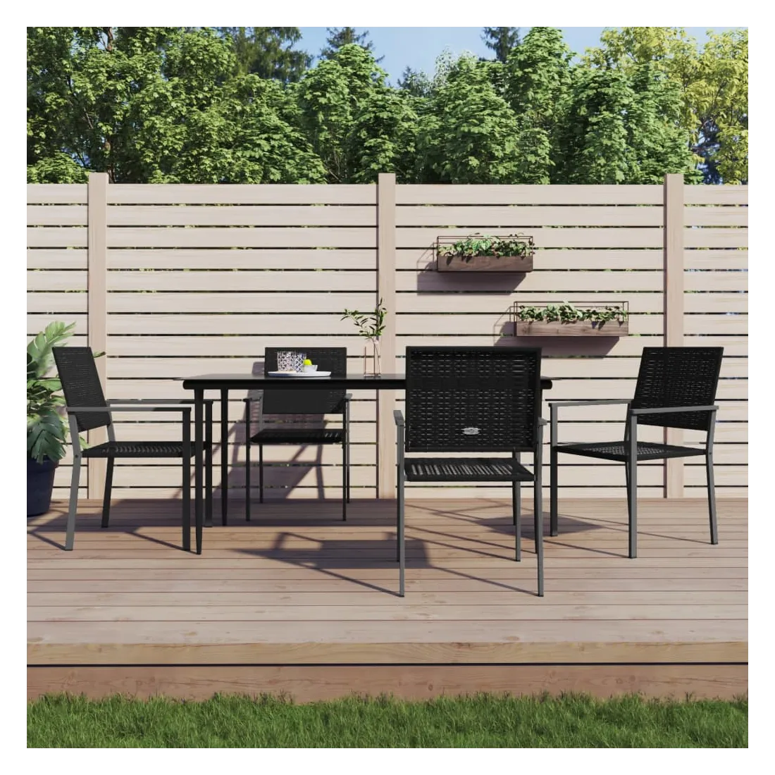 Ensemble à manger de jardin 5 pcs résine tressée acier